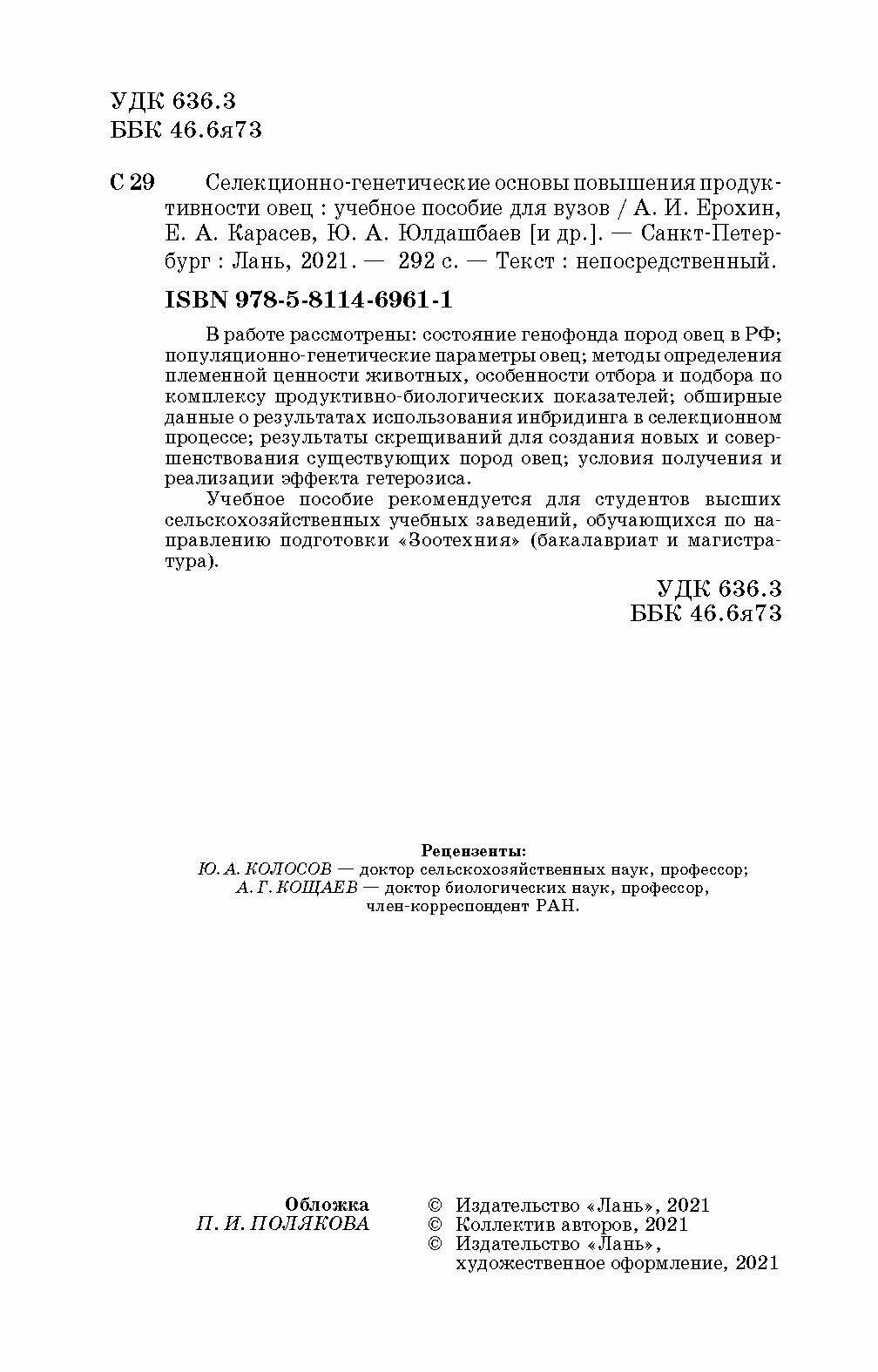 Селекционно-генетич.основы повыш.продуктивн.овец (Юлдашбаев Юсупжан Артыкович, Ерохин Александр Иванович, Карасев Евгений Анатольевич); Лань, 2021