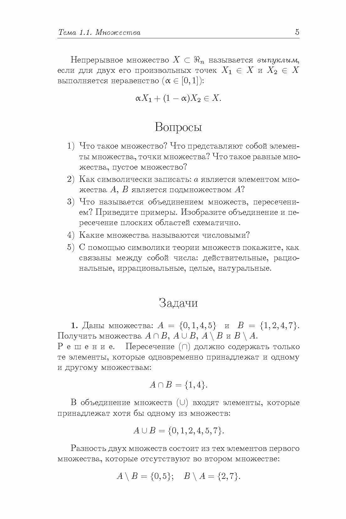 Содержание соответствует программам математической подготовки бакалавров и специалистов по направлениям «Инженерное дело, технологии и технические науки» и «Науки об обществе». Приводятся примеры приложения математики к решению конкретных технических и экономических задач. Разобраны решения типовых задач. Даны условия задач для самостоятельного решения и задания для выполнения расчетных работ. Приведены вопросы для самопроверки усвоения материала и типовые контрольные работы.