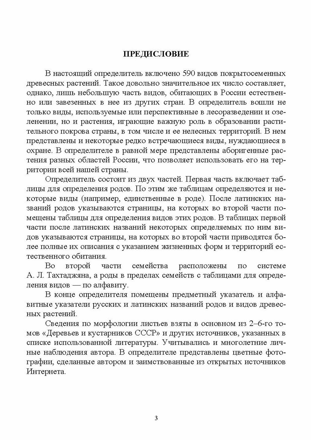 Определитель состоит из двух частей. Первая часть включает таблицы для определения 196 родов, а вторая — таблицы для определения 590 видов покрытосеменных древесных растений по побегам с листьями. Он иллюстрирован 221 черно-белым рисунком и 280 цветными фотографиями.Определитель предназначен для студентов техникумов и колледжей, обучающихся по специальностям «Лесное и лесопарковое хозяйство», «Садово-парковое и ландшафтное строительство». Он будет полезен также лесоводам, озеленителям и всем интересующимся древесными растениями.