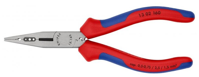 Инструмент для снятия изоляции KNIPEX предназначен для снятия защитных оболочек с различных видов кабелей, захвата, резки и изгибания проволоки различной степени твердости. Данным инструментом также можно опрессовывать контактные гильзы. Предусмотрена возможность удаления изоляции с кабелей различного сечения за счет специальных прецизионных отверстий. Двухкомпонентные чехлы рукояток исключают скольжение и защищают руки оператора во время работы.