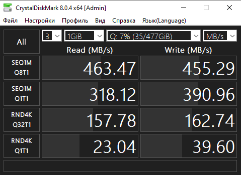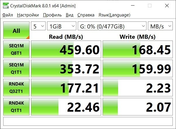 | Максимальная скорость последовательной записи | 450 МБ/c |