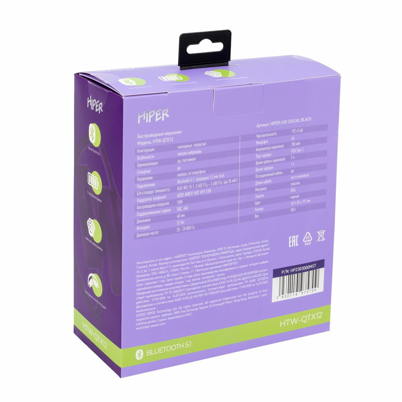 Наушники накладные Bluetooth HIPER Live QTX Black (HTW-QTX)