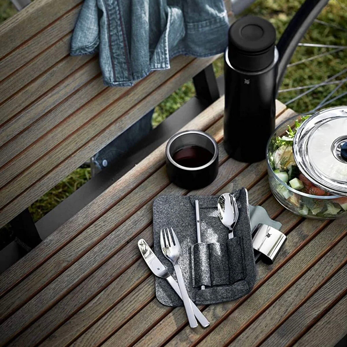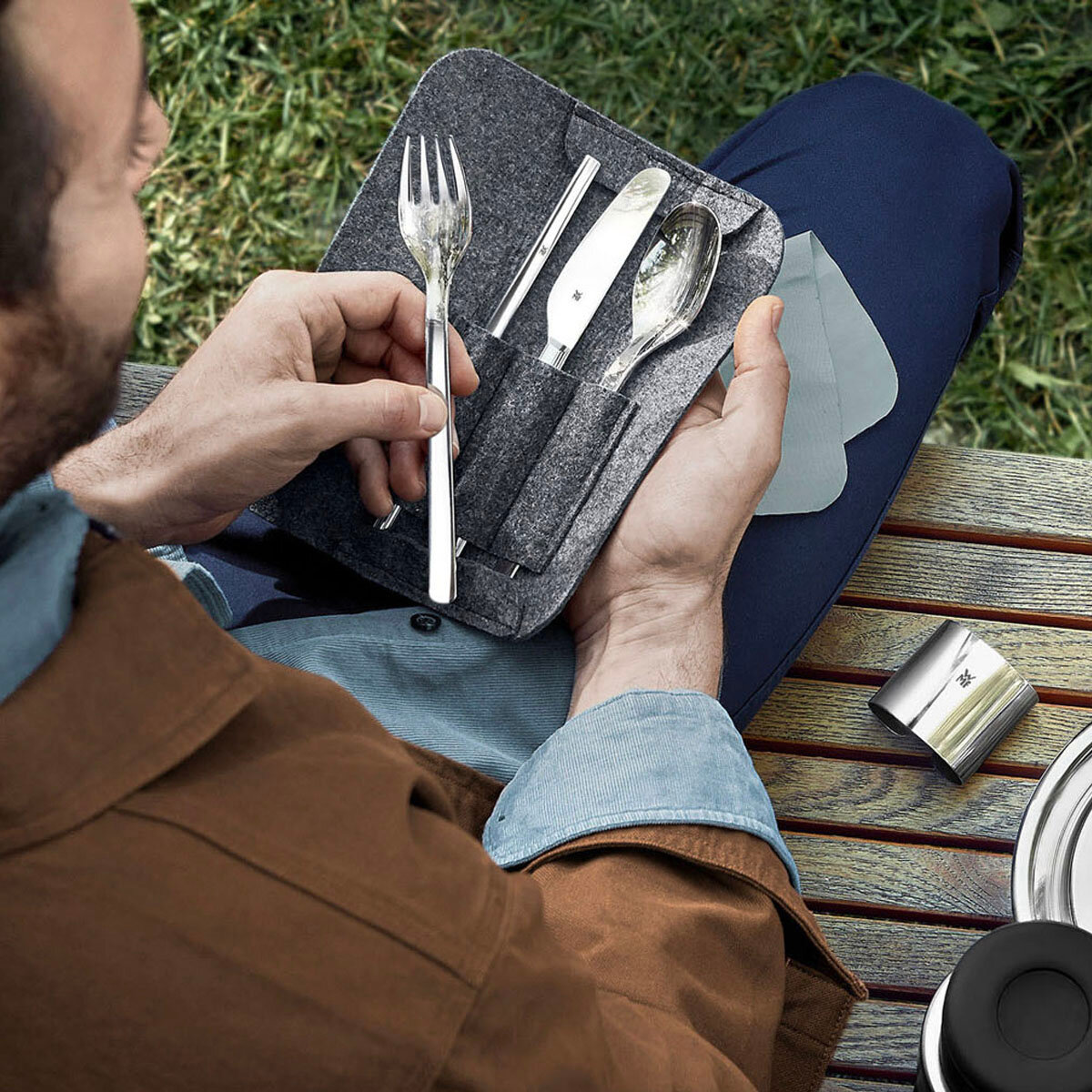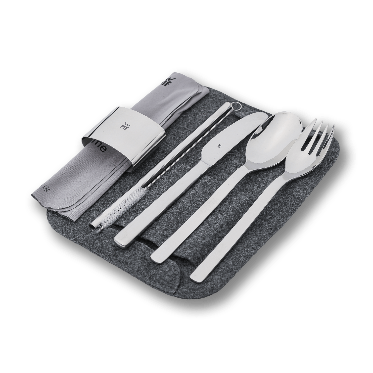 Набор выполнен из нержавеющей стали Cromargan® и заменяет одноразовые приборы и трубочки. От завтраков за рабочим столом, до обедов и напитков на вынос каждый предмет набора выполнен в эргономичном дизайне для удобного использования на ходу и легкого ухода.