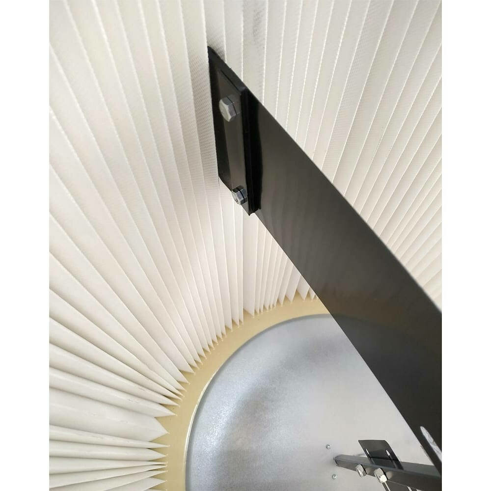 Фильтр-картридж состоит из металлического корпуса с сетчатой обечайкой, внутри которых находится фильтрующий элемент. В средней части размещена ось с лопастями. Вращение рукоятки, закрепленной сверху, позволяет "стряхнуть" осевшие на поверхности фильтра отходы резания. На нижней части закреплен резиновый манжет для плотного прилегания к корпусу вытяжной установки. В комплектации предусмотрен уплотнитель для усиления герметичности стыка между вытяжкой и фильтром.Картридж BELMASH C510A используется на установках DC2500, DC2500MC, DC2500MC/380, DC3900, DC3900/380.