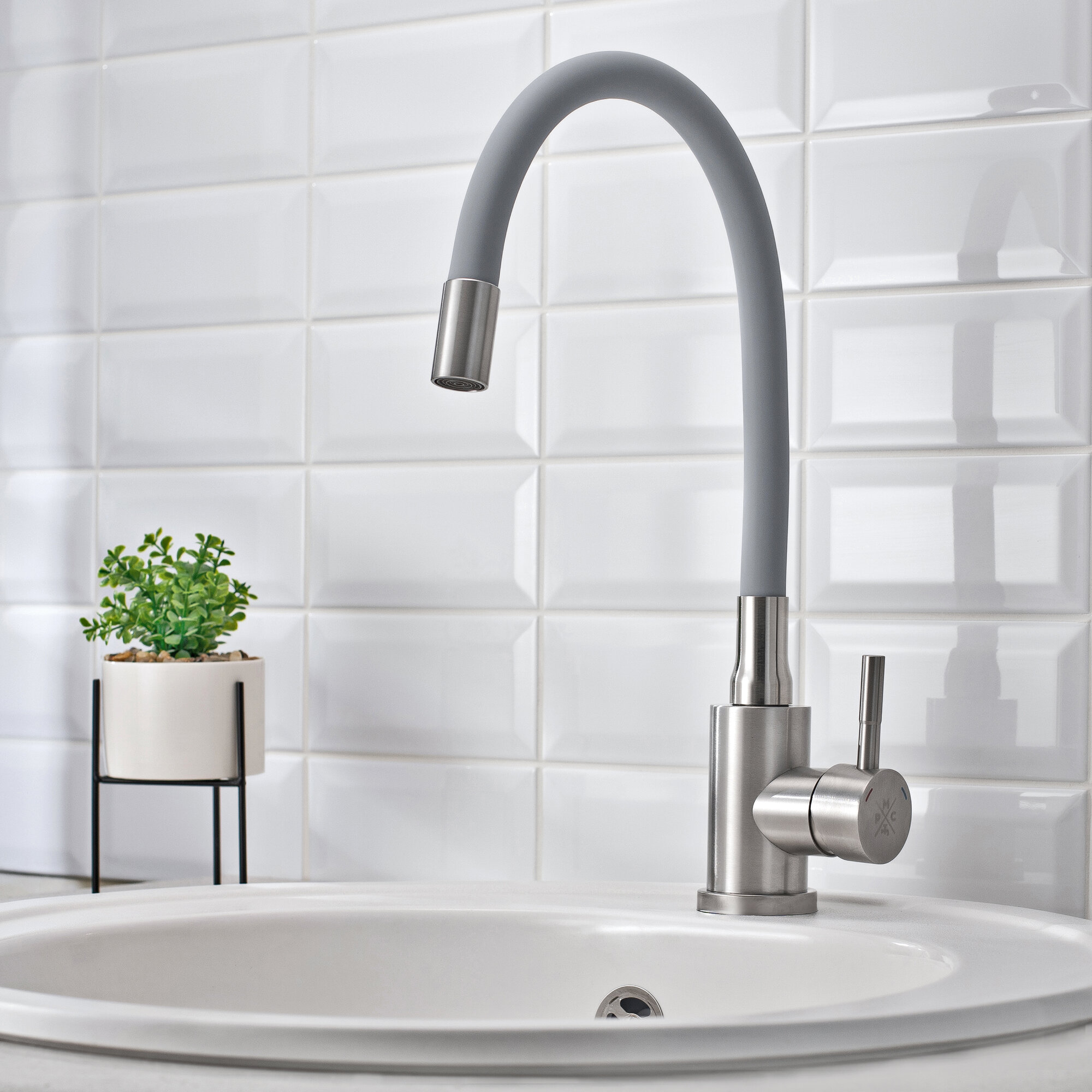 Смеситель для кухни РМС с гибким изливом и керамическим картриджем – современное решение для тех, кто ценит функциональность и стиль в интерьере. Белый матовый корпус из нержавеющей стали гармонично впишется в любую кухню, придавая ей свежести и чистоты. Благодаря гибкому изливу легко направлять поток воды в нужную сторону, что особенно удобно при мытье посуды разных размеров или наполнении высоких емкостей. Высокий излив высотой 26 см обеспечивает дополнительное пространство над мойкой, а длина излива 20 см позволяет эффективно использовать рабочую зону. Однорычажное управление делает процесс регулировки температуры и напора воды максимально простым и комфортным.