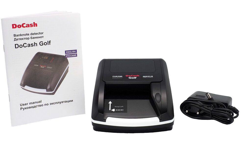 | Прочие особенности и свойства | DoCash Golf – это автоматический детектор валют, предназначенный для оперативной и максимально достоверной проверки подлинности банкнот.В DoCash Golf RUB реализованы все современные технологии обнаружения и анализа защитных элементов:измерение оптической плотности бумаги, точное измерение геометрических размеров, проверка магнитных и инфракрасных меток, проведение спектрального анализа краски. В результате достоверность проверки подлинности практически равна 100%. Полная автоматизация процесса позволяет минимизировать требования к квалификации персонала.,,Преимущества,,Выполнен с применением новейшей инновационной системы комплексной проверки банкнот на подлинность, включающей следующие принципы проверки:Ультрафиолетовая, Магнитная, Инфракрасная, Антистокс, Спектральный анализ краски, Геометрические размеры и Оптическая плотность,Стильный и компактный дизайн,Интуитивно-понятный яркий LCD дисплей,Оперативное обновление программного обеспечения на рабочем месте через обычный ПК или посредством micro SD,Умная система автоматического выключения экрана для повышения энергоэффективности устройства,Открываемый тракт детектора способствует легкой очистке датчиков от бумажной пыли,Максимально высокая скорость обработки одной банкноты |
