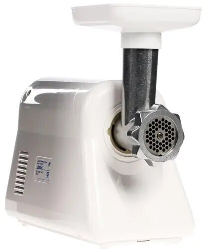 | Особенности | Корпус мясорубки и приемного лотка для продуктов изготовлены из прочного пластика белого цвета, на нижней части корпуса расположены прорезиненные ножки для дополнительной устойчивости. |