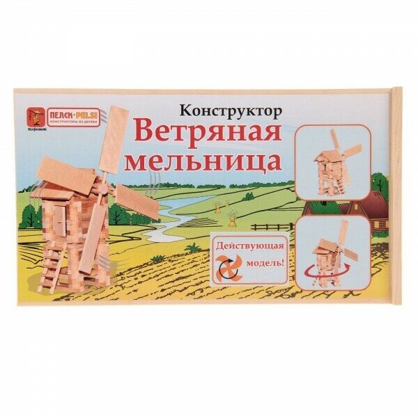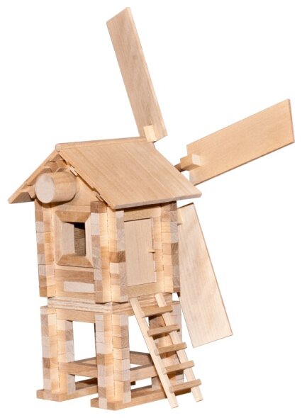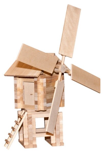 Деревянный конструктор, с помощью которого можно построить ветряную мельницу с вращающимися лопастями. Набор состоит из 146 элементов разных форм и размеров и подробной инструкции с пошаговыми действиями сборки. Лопасти мельницы вращаются за счет воздуха или поддувки вентилятором. Размер в собранном виде 32х32х17 см..