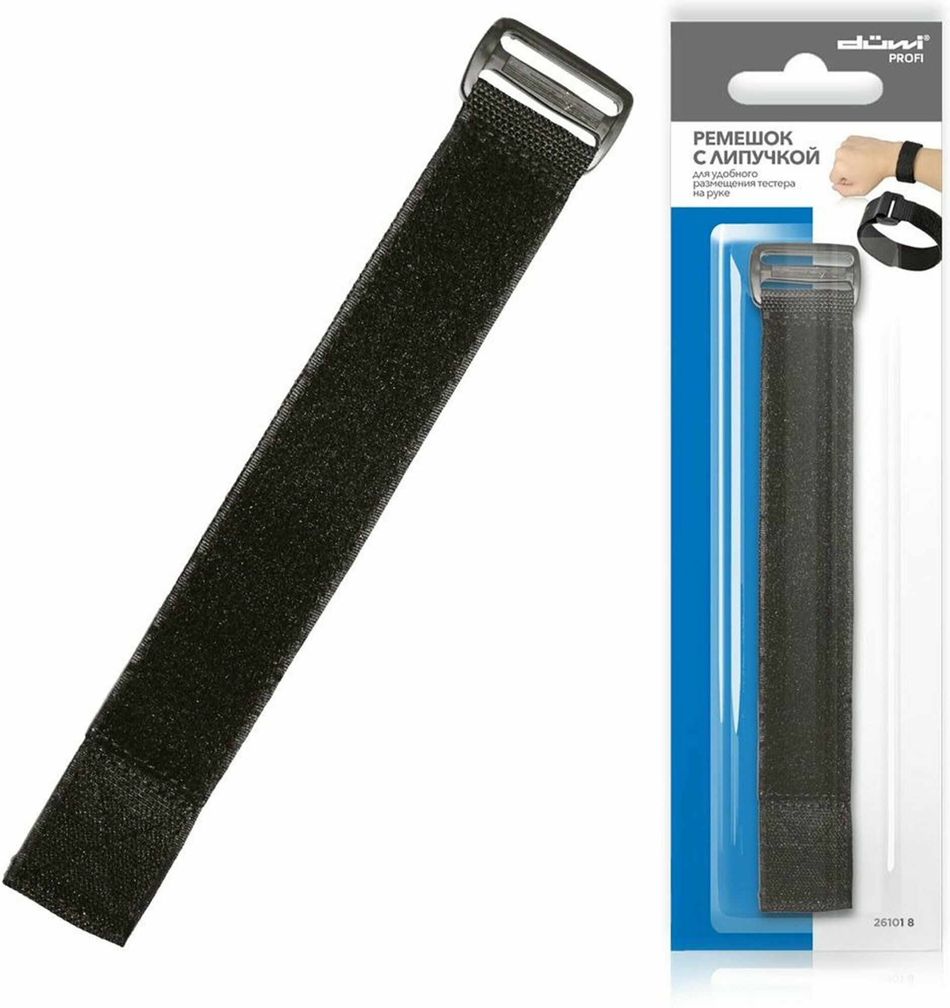 Набор для мультиметра. Ремешок на руку и клеящаяся лента-держатель 3 шт. Позволяет закрепить прибор на кисти руки, что делает работу пользователя более комфортной.