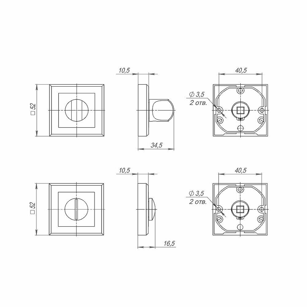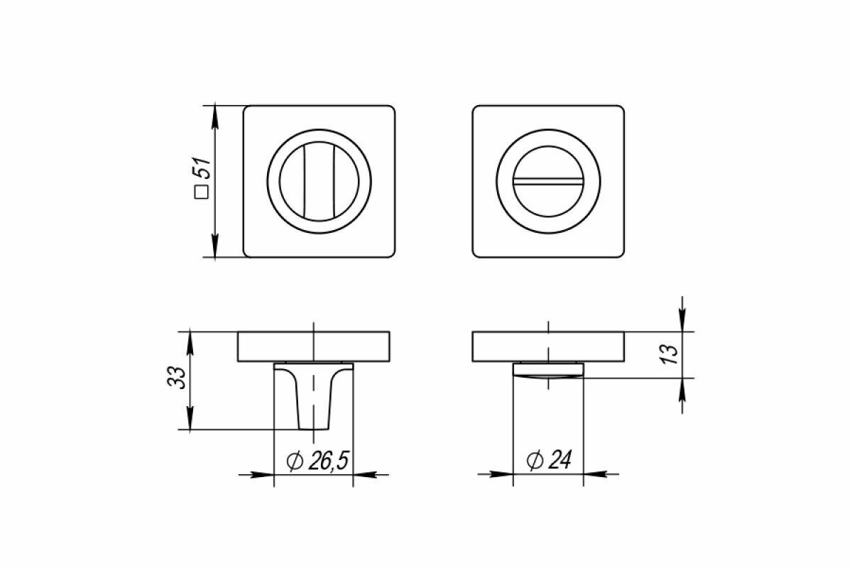 Поворотные ручки на квадратном основании Punto BK6 серии QL из коллекции SIMPLE LIVING подходят для установки на внутренние входные и межкомнатные двери. Материал изготовления: ZAMAK. Гальваническое покрытие прошло тест на устойчивость к коррозии в соляном тумане. В комплект входят: соединительный квадрат 6x80 мм, винты, стяжные винты.
