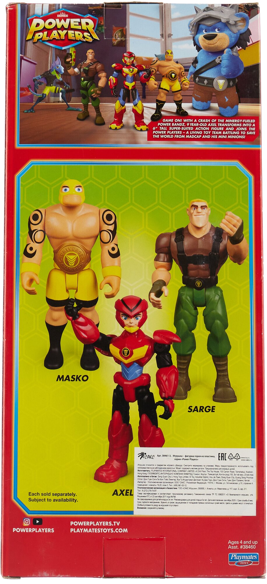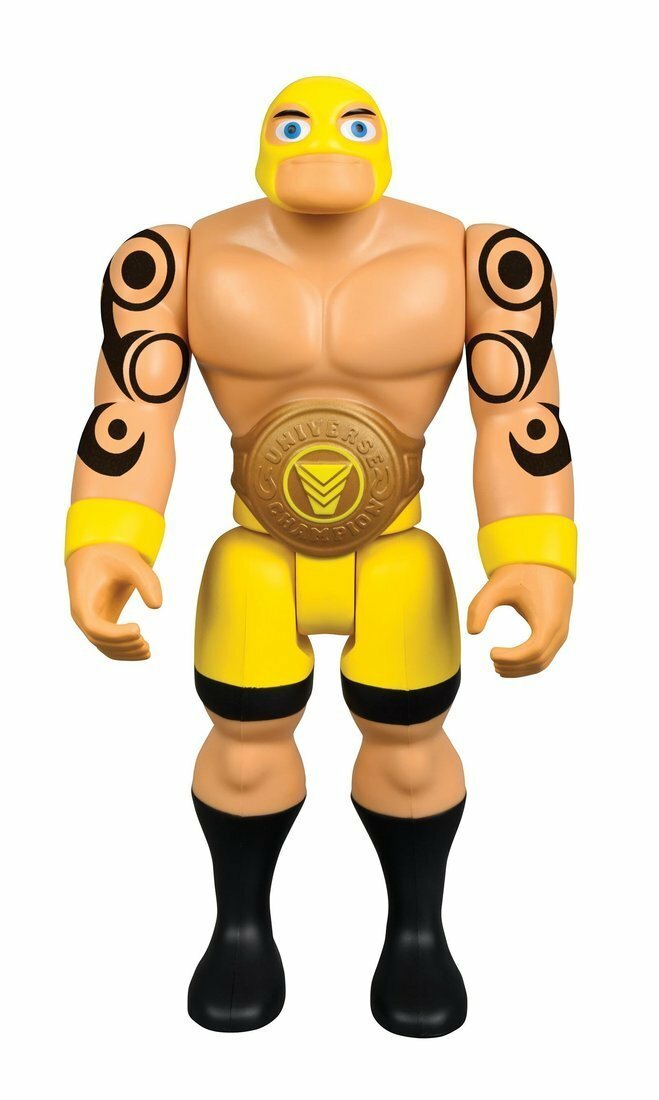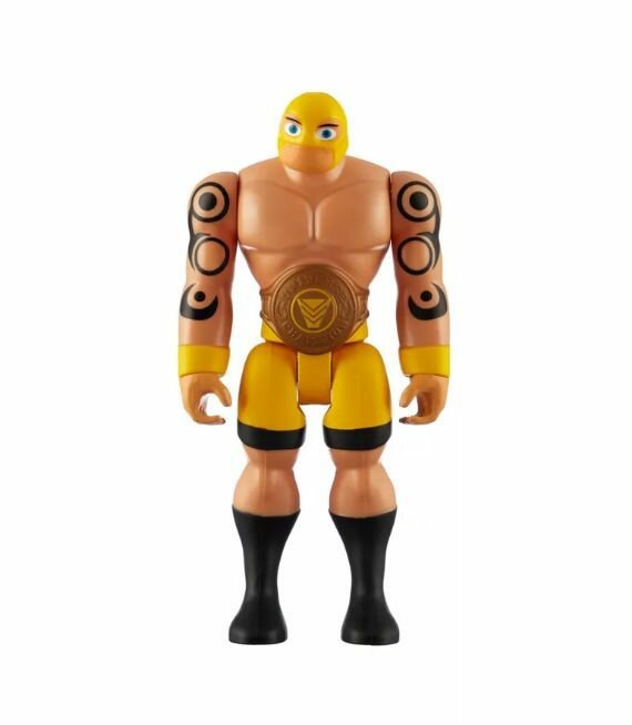 Фигурка персонажа Power Players силача Маско с хорошо детализированным туловищем с татуировками, одет в желтые спортивные трусы, на поясе большой красивый пояс с круглой бляшкой. Фигурка имеет 4 точки артикуляции на туловище, может принимать разные боевые позы. В комплекте аксессуар и оружие. Высота фигурки 26 см.