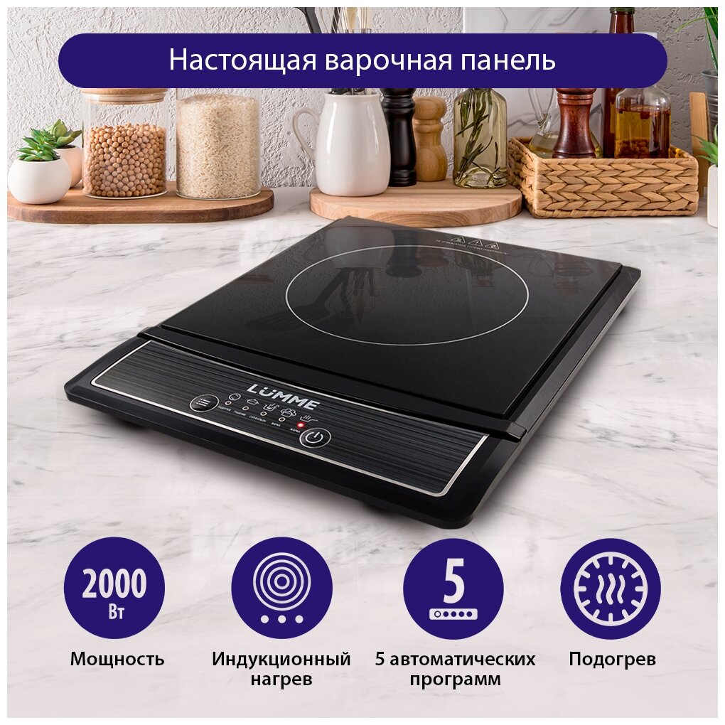 Настольная электрическая плитка Black Pearl от Lumme – это инновационное решение для быстрой и удобной готовки. Благодаря мощности конфорок в 2 кВт, она обеспечивает быстрый нагрев и равномерное распределение тепла на поверхности.