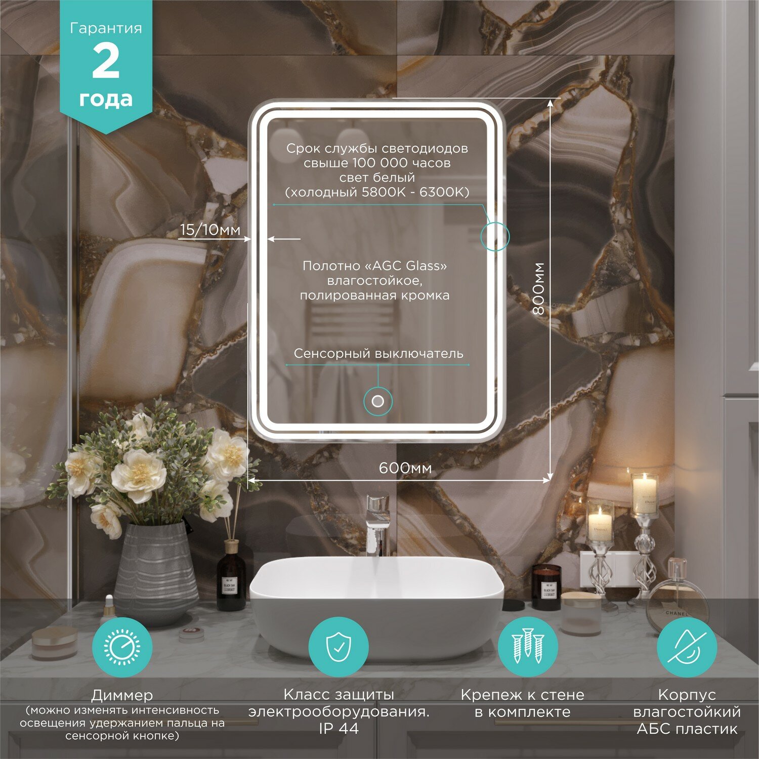 Страной бренда Mixline является Россия, все товары производятся с выполнением соответствующих стандартов качества, что позволяет быть уверенными в долговечности и надежности. Зеркало Mixline Адриана 60 с подсветкой правильный выбор в современном дизайне ванной, придающий уникальность всему помещению, при этом сохраняя функциональность.