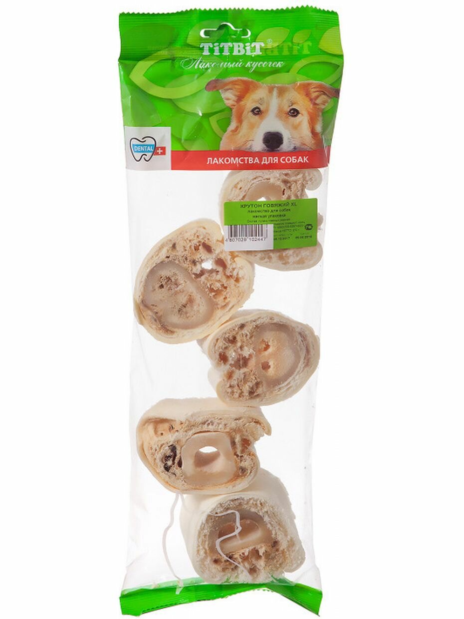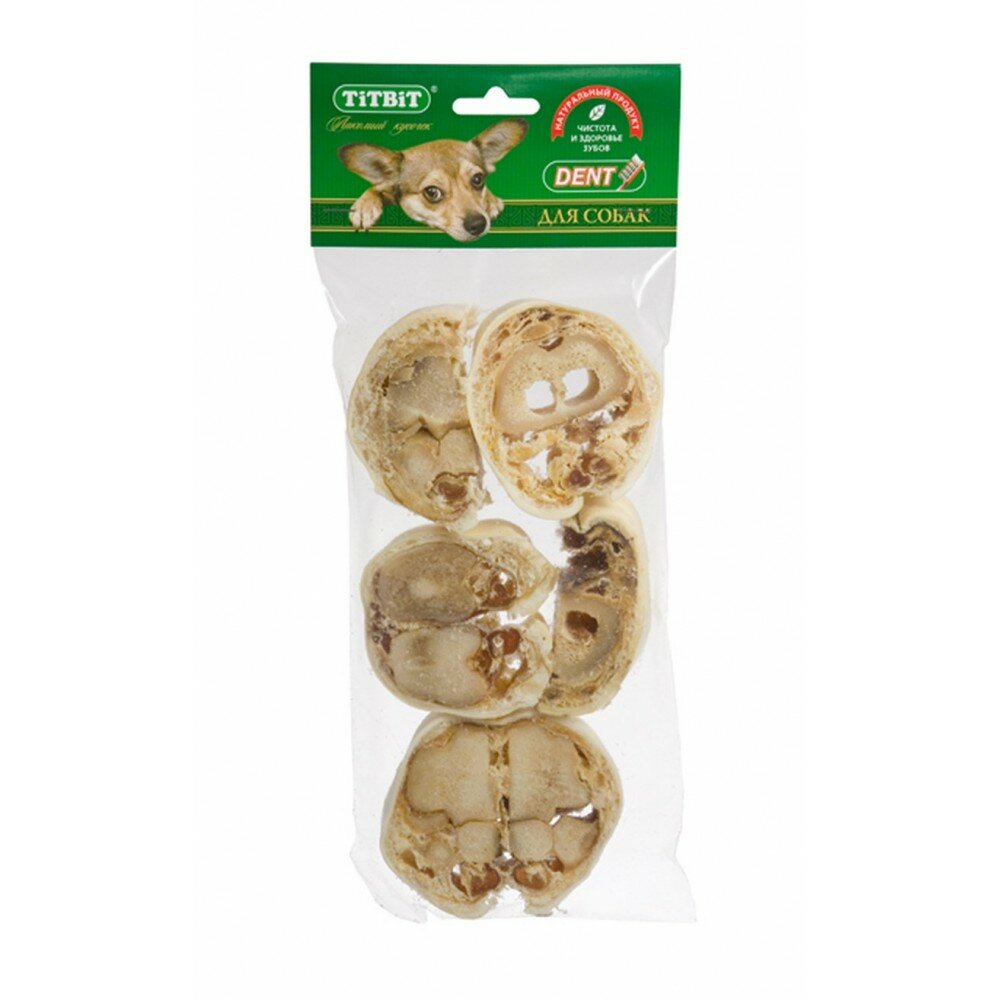 Лакомство для собак TiTBiT - высушенная говяжья голень, нарезанная поперек кости. Прекрасная игрушка, сохраняющая в целости предметы интерьера и личные вещи.