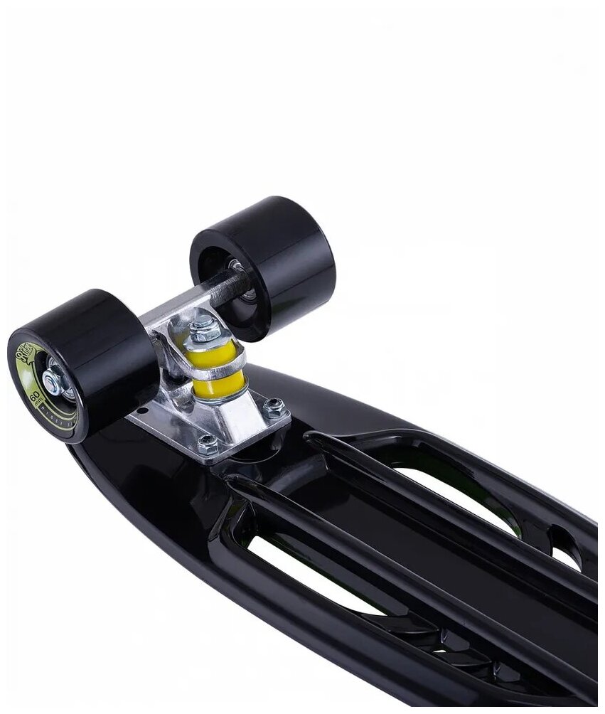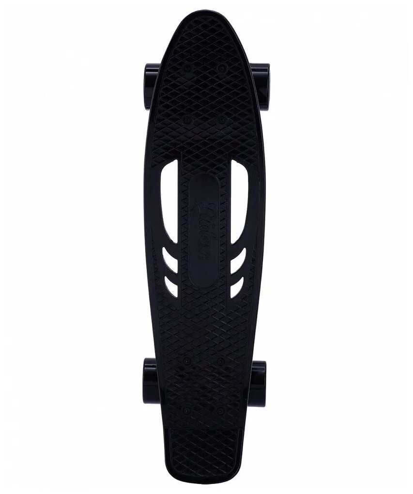 Черный как сама ночь, надежный и быстрый как болид Формула-1. Уверен в своих силах и находишься в поисках подходящего пластборда? Твои поиски окончены. Крепкая пластиковая дека не боится влаги, а алюминиевая подвеска добавляет надежности при езде.