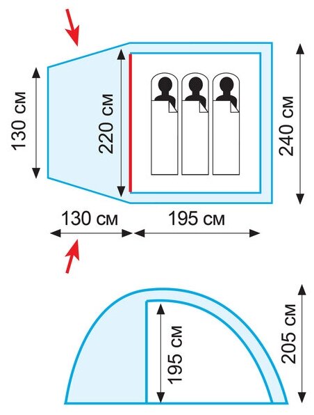 | Форма палатки | Полусфера |