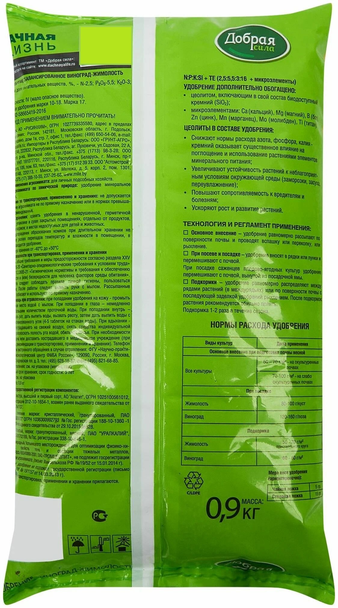 - Удобрение открытого грунта Виноград-Жимолость, пакет (Добрая Сила), 0,9кг обзор DS22010121