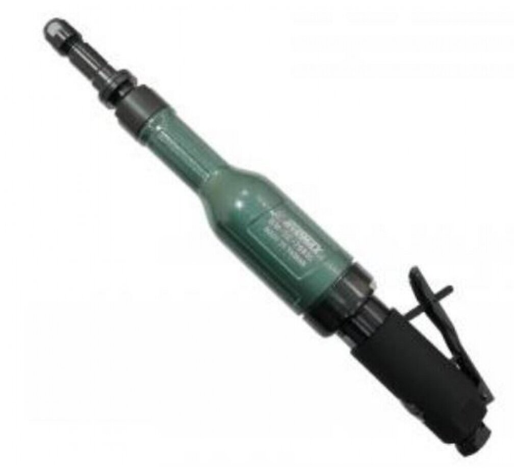Бормашинка пневматическая прямая удлиненная индустриальная - вариант для максимально тяжелой работы, изготовлена в крепком металлическом корпусе. Основное применение это работы по зачистке сварных швов, обработке литейных заготовок из стали и чугуна и других металлов, а также в производстве металлоконструкций, при их зачистке. Достоинства : Высокий ресурс работы в экстримально тяжелых условиях; максимальная мощность 1HP. безопасное рячажное включение. Особенности : комплектуется цангой 6 мм, опционально цанга 8 мм; вариант исполнения с поворотным включением; Опционально возможно установить защитный кожух Ø 63 мм, под зачистной абразивный круг 60х20х20 мм.