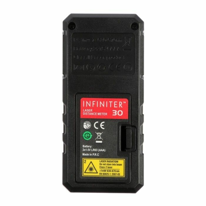 INFINITER 30 — доступный по цене лазерный дальномер с эргономичным корпусом и оптимальным набором функций. Прибор оснащен ярким дисплеем, который облегчает работу при любых условиях освещения. С помощью лазерного дальномера вы сможете производить измерения в помещении и на улице на расстоянии до 30 метров. По весу и размерам новый прибор нисколько не уступает обычному мобильному телефону. Лазерный дальномер INFINITER 30 удобно держать в руке, хранить и транспортировать. Крупные кнопки послушно реагируют на нажатие даже при работе в перчатках. Боковые части корпуса с ребристой поверхностью не позволят прибору выскользнуть из рук.