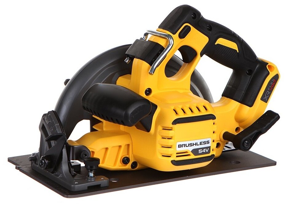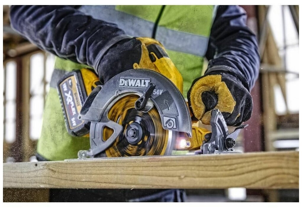 Аккумуляторная дисковая ручная пила DeWalt FlexVolt DCS578N предназначена для распиловки бревен и реза сухих веток в саду.
