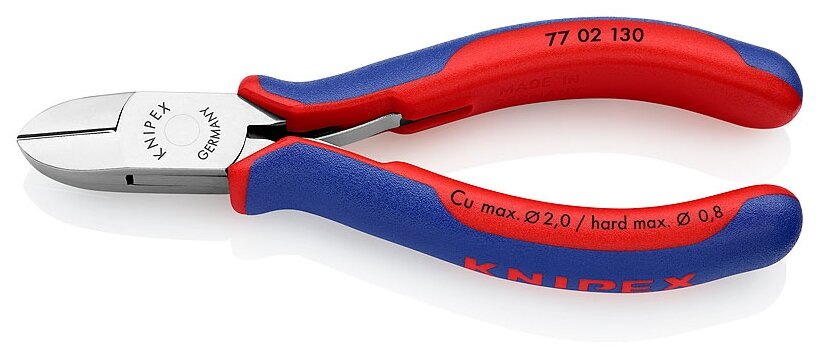 Бокорезы для электроники Knipex , округлая головка, 130 мм, 2-компонентные ручки пригодятся при тонких электромонтажных работах. Преимущества Инструмент имеет рукоятки с двухкомпонентными чехлами, что добавляет удобство при использовании Рабочая часть произведена из инструментальной стали, кованой и закаленной для продолжительного срока службы Скругленная головка с режущими кромками облегчает работу в труднодоступных местах Рукоятки бокорезов для электроники имеют двухкомпонентные чехлы, поэтому они удобно ложатся в руку и не выскальзывают во время работы Инструмент изготовлен из кованой инструментальной стали, которая прошла закалку в масле, что обеспечивает долгий срок службы