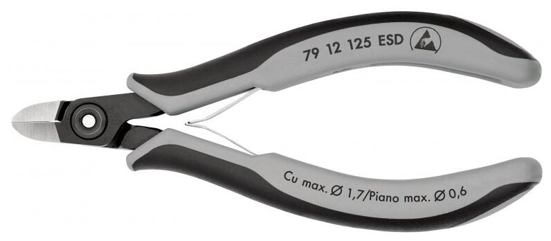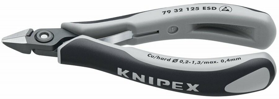 Компания Knipex является одним из ведущих производителей шарнирно-губцевого инструмента в мире. Knipex — это сочетание новейших технологий и многолетнего опыта слесарного и кузнечного дела. Инструменты Knipex во многом превосходят свои аналоги. Производитель гарантирует высочайшее качество, надежность и долговечность. Многие технологии компании запатентованы. Для самых точных ювелирных работ по резке, например, в электронике или точной механике, где обрабатываются минимальные размеры деталей, создана усиленная модель прецизионных компактных бокорезов модели с антистатическим эффектом. Технические особенности модели: Уменьшенный вес и более миниатюрная головка по сравнению со многими стандартными прецизионными кусачками; Усиленные бокорезы изготовлены из хром-ванадиевой шарикоподшипниковой вороненой стали высокого качества, долговечной, кованой и многократно закаленной в масле; Шлифованные режущие кромки с очень малыми фасками для резки материалов любой твердости максимально вровень с поверхностью, дополнительно закаленные высокочастотными токами до твердости около 64 HRC по шкале Роквелла; Тщательно проработанный винтовой шарнир обеспечивает равномерное движение; Острые полированные лезвия легко режут мягкую проволоку диаметром ⌀ 0,3-1,7 мм, материалы средней твердости — ⌀ 1,3 мм и проволоку высокой твердости сечением до ⌀ 1,0 мм. Также бокорез справляется с материалами типа рояльной струны диаметром до ⌀ 0,6 мм Клещи оснащены двойной пружиной с легким ходом. Эргономичная конструкция ручек создана для удобства применения в любой руке и дополнительно увеличивает силу нагрузки. Рукоятки инструмента вложены в антистатические электроотводящие чехлы с рассеянием в стильной цветовой гамме серого и черного. Длина инструмента составляет 125 мм, вес всего 61 гр.