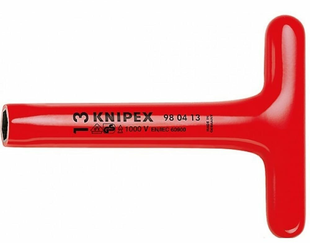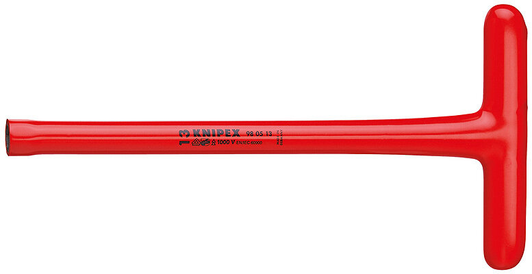 Отвёртка торцевая Knipex , VDE, с внутренним шестигранником, с Т-образной рукояткой, 19 x 300 мм, диэлектрическая предназначен для закручивания и откручивания болтов и гаек при проведении ремонтных работ. Изготовлен из инструментальной стали и прошел проверку на электробезопасность.Преимущества Имеет удобную форму ручки (Т-образную), которая не выскальзывает из ладони и делает работу более удобной и комфортной Соответствует стандарту DIN EN/IEC 60 90 Можно работать при напряжении до 1000 В - безопасность Долговечность и надежность инструмента Диаметр головки - 31 мм