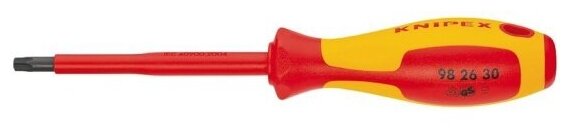 Для работы с винтами Torx используется отвертка со специальным наконечником. Данная модель винтов имеет шестирадиусный (звездообразный) шлиц. Это современный и надежный крепежный элемент, без которого уже не обходится технологический процесс любого мебельного производства. Помимо этого, винты Torx применяются при сопряжении кованых изделий, инсталляции металлических или деревянных ограждений, в машиностроении, судопроизводстве, для креплений в конструкциях различных станков, а также в общественных местах как антивандальный крепеж. Данные соединения отличаются высокой точностью, прочностью, долговечностью и надежностью. Для работы с винтами Torx компания Knipex разработала модель отвертки . Технические характеристики инструмента: Изготовлен из высококачественной хромованадиевой - молибденовой стали; Наличие изоляции практически по всей длине, неизолированная часть наконечника составляет 18 мм; Слегка зауженный стержень с изоляционным покрытием — создан специально для работы с труднодоступными или глубоко посаженными винтами, крепежами или пружинными зажимами — удобен при работе с клеммниками, автоматами и различной электроаппаратурой; Тип наконечника TX30 – под шлиц TX размера «30»; Общая длина инструмента 210 мм, в том числе длина рукоятки составляет 110 мм; Вес — 25 грамм. Рукоятка отвертки располагается в удобном износостойком двухкомпонентном чехле из твердого пластика и мягких вставок, которые предотвращают выскальзывание во время работы, и отвертка прочно и надежно лежит в руке мастера. Эргономичная противоскользящая рукоятка повышает передачу усилия для работы без усталости. Все инструменты компании изготавливаются исключительно на специализированных предприятиях Knipex в Германии и существенно превосходят многие аналоги. Модели Knipex сочетают в себе новейшие технологии, многолетний опыт слесарного и кузнечного дела, высочайшее качество, надежность и повышенный срок гарантийной эксплуатации.