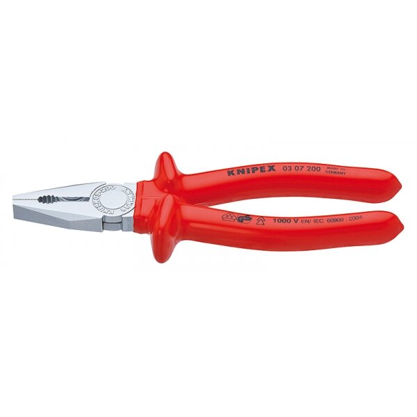 Плоскогубцы комбинированные Knipex 03 07 200 - это высококачественный инструмент, который сочетает в себе удобство и функциональность.Knipex - это известный бренд, который зарекомендовал себя на рынке благодаря своей надежности и долговечности.Плоскогубцы оснащены диэлектрическими рукоятками, что делает их безопасными для использования в условиях повышенной влажности или при работе с электрическим оборудованием.Материал губок - инструментальная сталь, которая обеспечивает высокую прочность и долговечность инструмента.Рукоятки-чехлы обливные, что обеспечивает удобный и надежный хват.Покрытие из хрома обеспечивает дополнительную защиту от коррозии и увеличивает срок службы инструмента.Усиленная кромка позволяет работать с твердыми материалами, такими как кабели и проволока.Режущие кромки дополнительно закалены токами высокой частоты до твердости примерно 60 HRC, что обеспечивает их остроту и долговечность.Ширина плоскогубцев составляет 66 мм, что делает их удобными для работы в ограниченном пространстве.В целом, плоскогубцы комбинированные Knipex 03 07 200 - это надежный и функциональный инструмент, который станет незаменимым помощником как для профессионалов, так и для любителей.