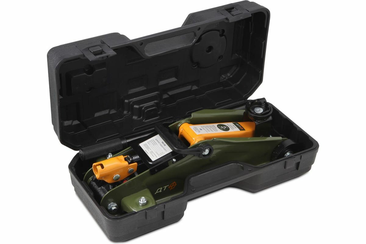 Домкрат гидравлический подкатной Дело Техники 2 тонны, 135 мм, в кейсе ()Подкатной гидравлический домкрат предназначен для подъема автомобиля на требуемую высоту. Благодаря мобильности, удобству эксплуатации и надежности, подкатные домкраты успешно применяются для проведения слесарно-монтажных работ при ремонте и обслуживании автомобиля. Устойчивость, достигаемая за счет широкой базы подкатного домкрата, обеспечивает надежный подъем. Максимальная грузоподъемность: 2 т; Высота подъема: 340 мм; Высота подхвата: 135 мм; Особенности: Рабочий диапазон 135-340 мм; Предохранительный клапан защиты от перегрузки; Морозостойкое масло (-40° С); Ручка для переноски; Резиновая накладка на опорную площадку; Удобный транспортировочный кейс; В комплект поставки входит: Домкрат; Накладка резиновая на опору; Рукоятка; Пластиковый кейс; Руководство по эксплуатации и техническому обслуживанию; Транспортная коробка. Домкрат не предназначен для длительного удерживания автомобиля на весу! Запрещено производить работы под автомобилем до установки страховочных подставок! Внешний вид и/или характеристики товара могут быть изменены производителем в соответствии с производственным процессом.