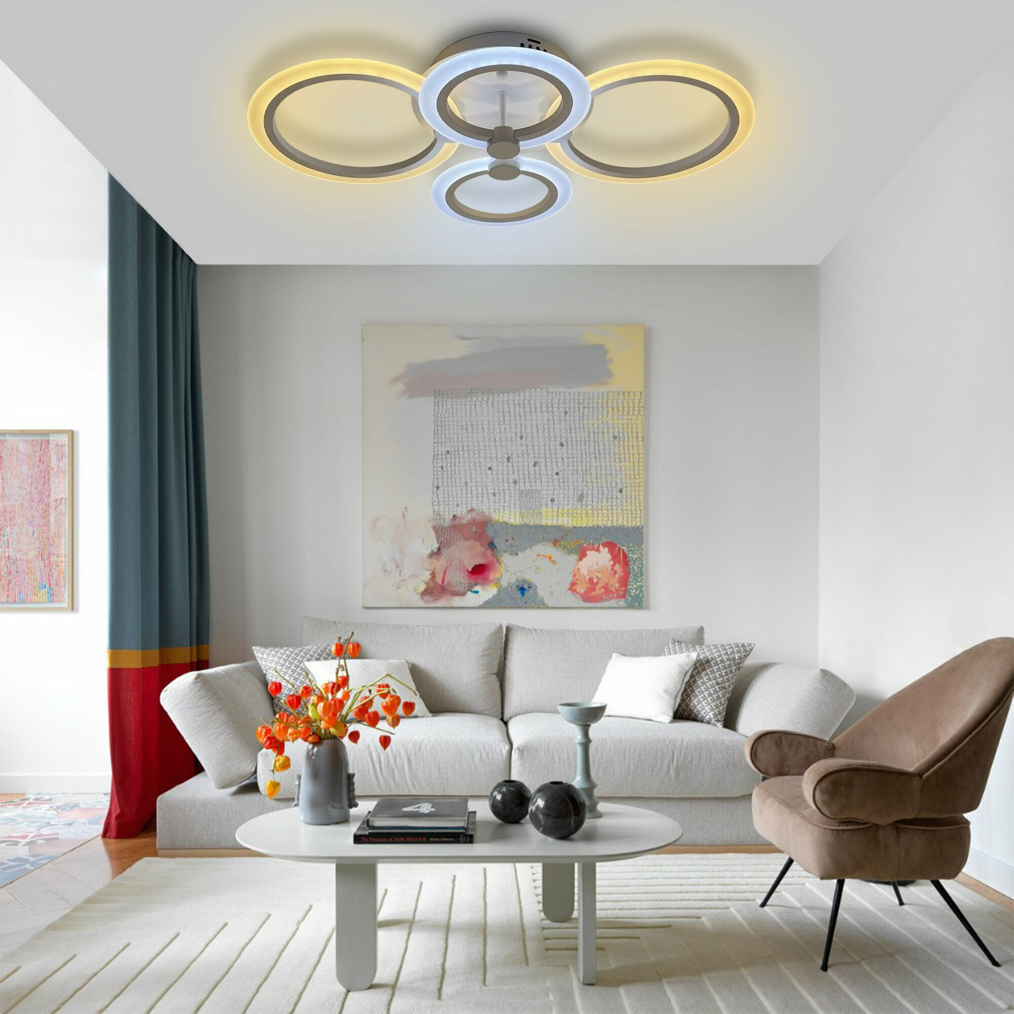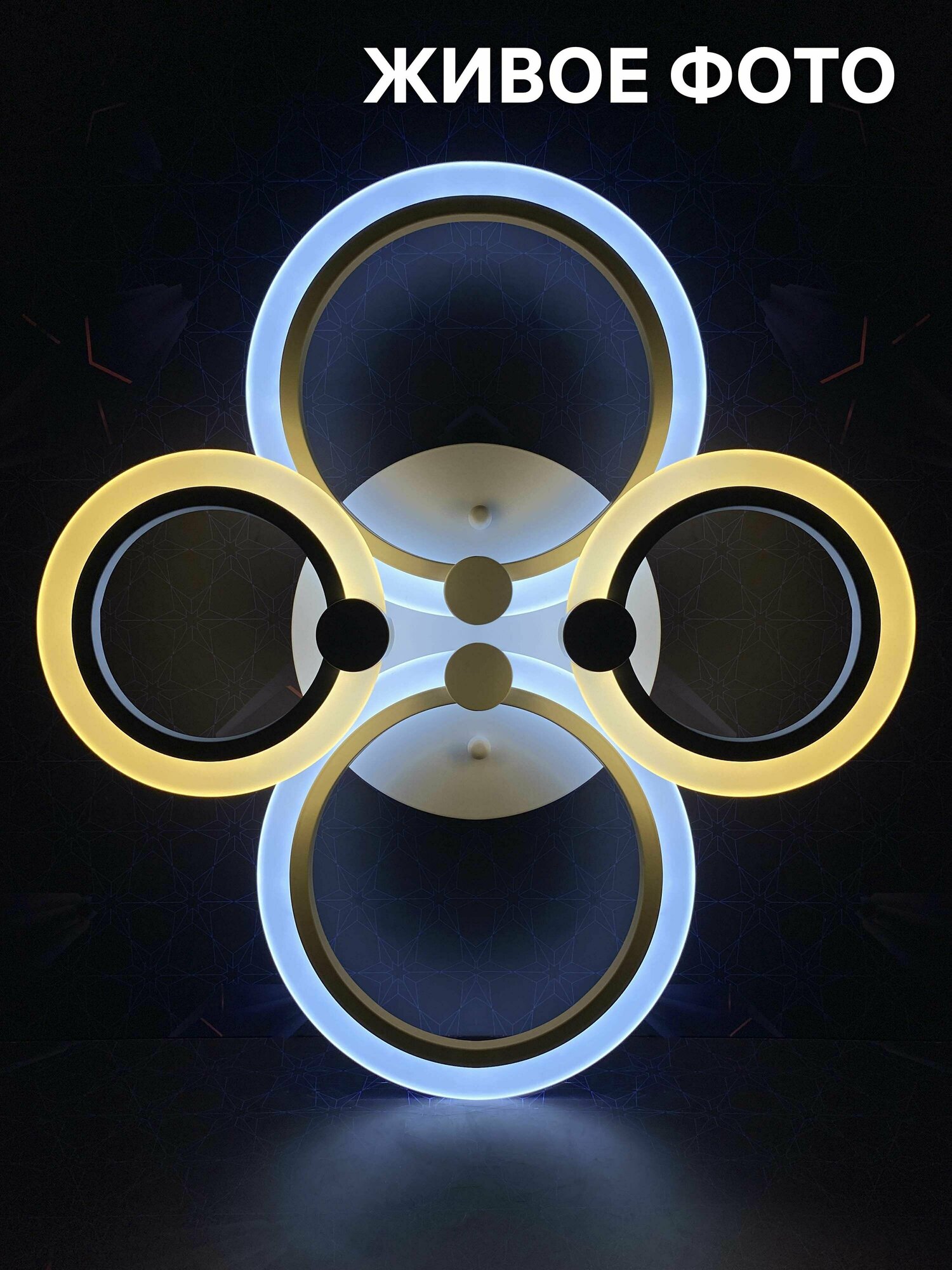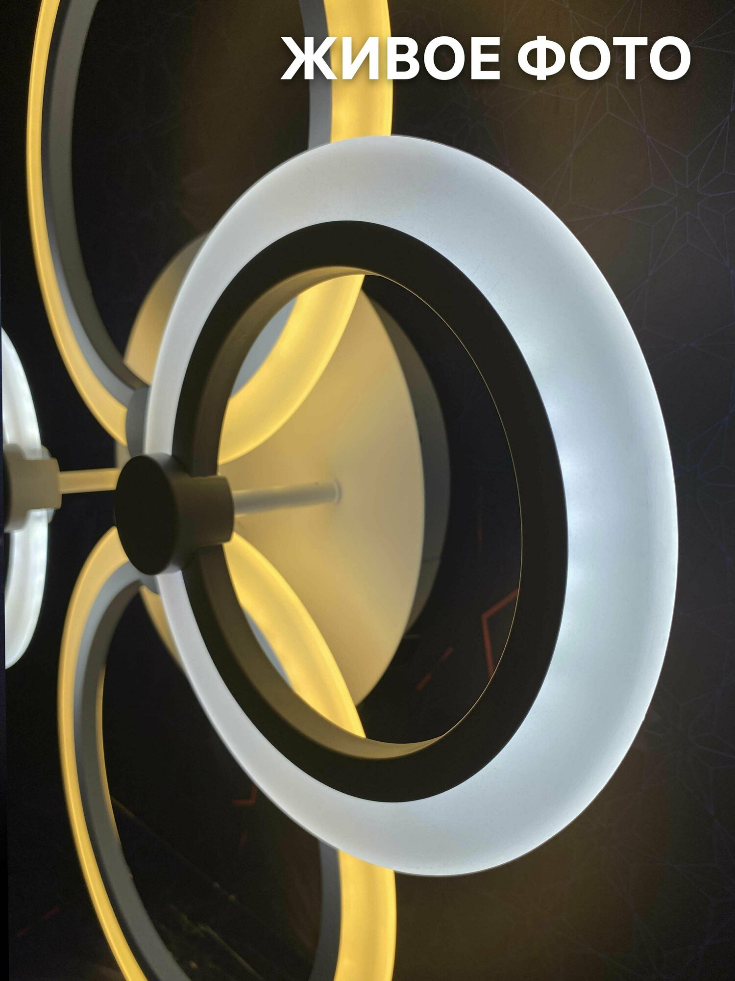 Светодиодная диммируемая люстра REV Ritter 52018 4 Минималистичные по отдельности, вместе контуры светильника становятся оригинальным геометрическим орнаментом, который выгодно подчёркивает любой интерьер. Вы можете сделать этот светильник яркой финальной точкой ремонта или начать с него свое дизайнерское путешествие.Каким бы ни было пространство вокруг светильника, освещено оно будет по вашему вкусу. Меняйте уютный полумрак на яркий дневной свет, согревайтесь тёплыми оттенками, заряжайтесь бодростью с холодными или включайте разные оттенки одновременно.В комплект входит инфракрасный пульт, с помощью которого вы сможете управлять светильником. Никаких сложных манипуляций и попыток поймать нужный уровень яркости: освещение регулируется парой кнопок.Светодиодные лампы и акриловые плафоны обеспечивают долгую и безопасную эксплуатацию — они не разбиваются и не содержат токсичных веществ. Использование светодиодов и технологии диммирования позволяет значительно снизить расход электроэнергии: до 80% по сравнению с обычными лампами накаливания.