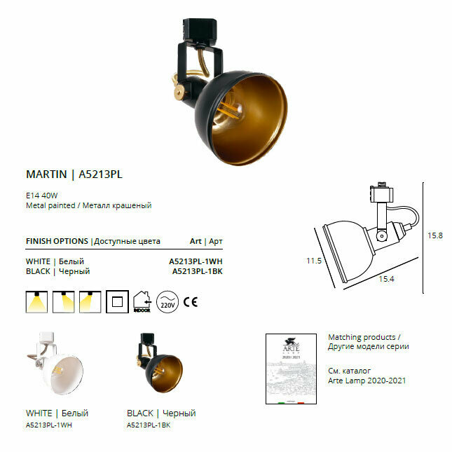 Трековый светильник однофазный 220V Martin A5213PL-1WH - продукт известной компании Artelamp (Италия). Имеет максимальную мощность 40 Вт, освещает площадь до 2 кв. м. Отлично подойдет для таких мест, как гостиная, кухня, офис. Впишется в интерьеры следующих стилей: лофт.
