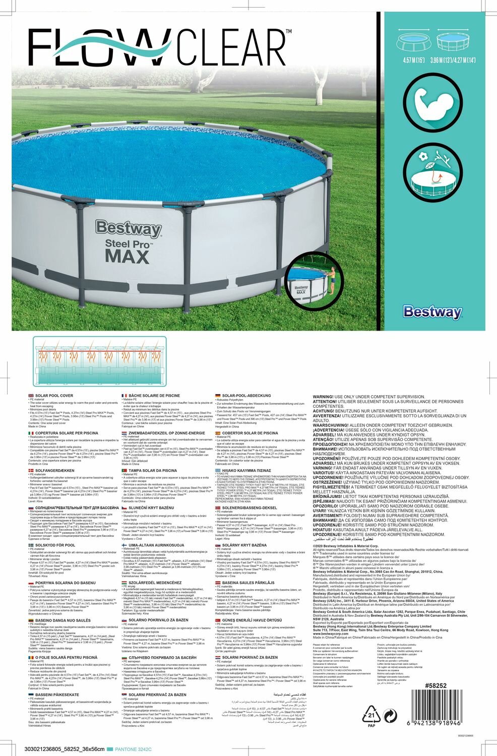 Покрывало Bestway для бассейна солнечное для D457