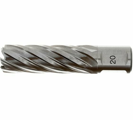 Кольцевое сверло 20х55 мм HSS Euroboor, HCL.200Кольцевые фрезы из быстрорежущей стали HSS с уникальной геометрией, отличаются пониженной вибрацией, высокой точностью резки на больших скоростях, а также долгим сроком службы. Могут использоваться на всех сверлильных станках на магните, выгодно отличаются от спиральных сверл скоростью работы и энергозатратами. Работают с трубами или листами из конструкционной стали, цветных металлов, пластика, а также из нержавеющей стали с использованием определенных режимов работы.Кольцевая фреза имеет хвостовик 19 мм Weldon.Применение:Идеально подходят для резки стали < 750N, пластика.Также хорошо подходят для алюминия, латуни, меди, олова и стали < 900N.