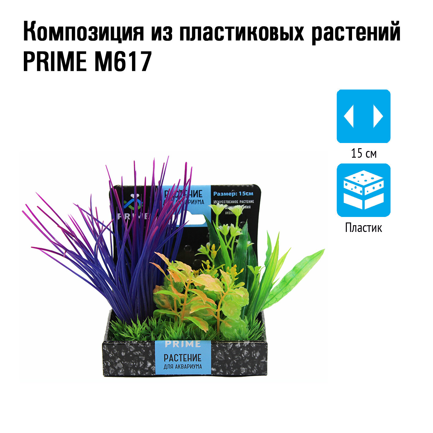 Композиция PRIME из пластиковых растений, 15см M617. Пластиковая декорация для использования в аквариумистике и фитодизайне. Декорации выполнены из экологически чистых материалов.Абсолютно безвредны для аквариумных обитателей и живых растений.