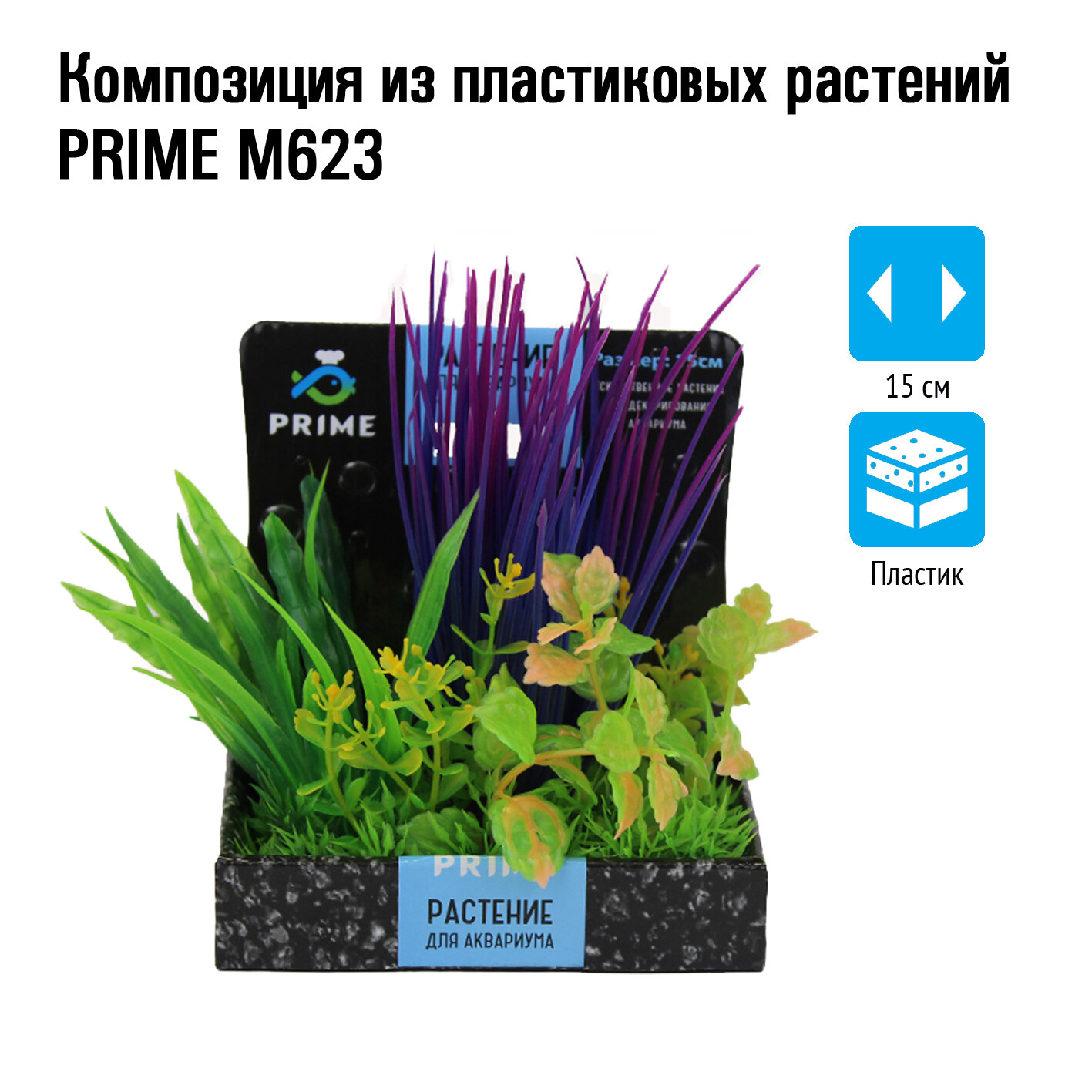 Композиция PRIME из пластиковых растений, 15см M623. Пластиковая декорация для использования в аквариумистике и фитодизайне. Декорации выполнены из экологически чистых материалов.Абсолютно безвредны для аквариумных обитателей и живых растений.