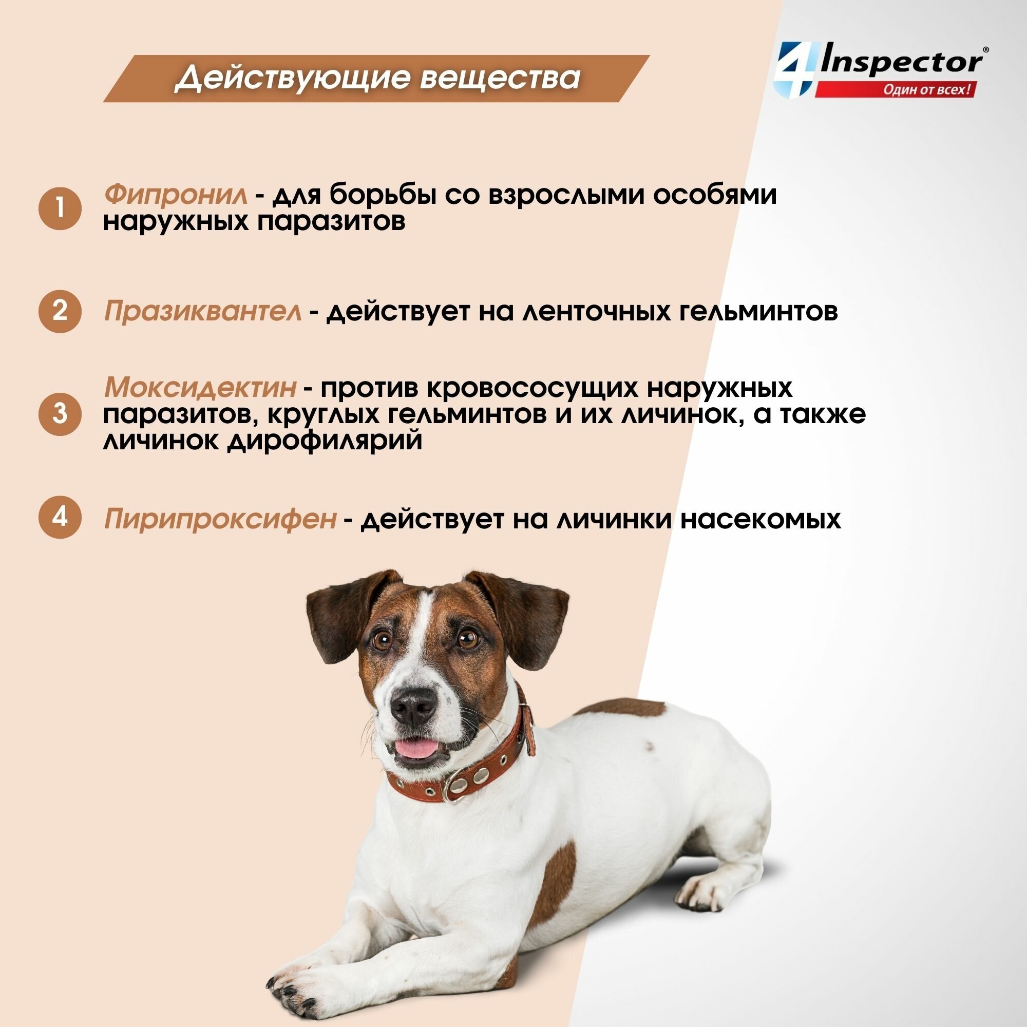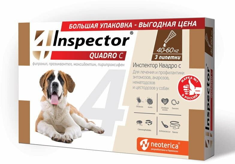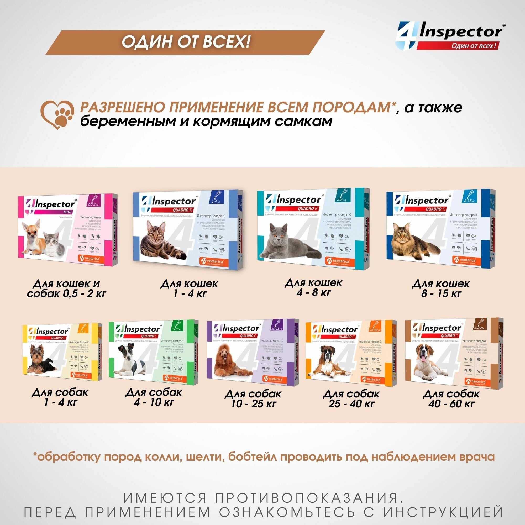 Inspector Quadro — Один от всех! Комплексный препарат против 20 видов внешних и внутренних паразитов.