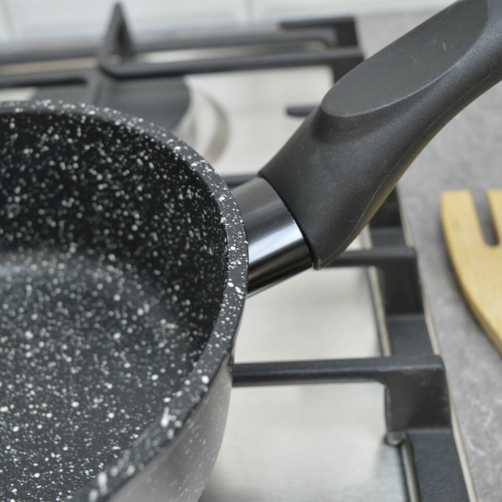 Ковш подходит для приготовления малых объёмов пищи, идеален для ежедневного применения. В нём можно сварить кашу, яйца, рис, соусы или макаронные изделия. Удобная бакелитовая ручка, диаметр дна 12 см. Гарантия на каждое изделие 5 лет. Выдерживает не менее 3000 циклов приготовления.