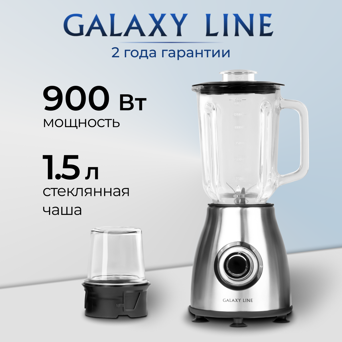 Стационарный блендер GALAXY LINE GL2160 — это многофункциональный прибор класса premium с расширенной комплектацией. Он предназначен для измельчения, смешивания и взбивания продуктов, а также для создания фитнес-напитков, протеиновых смесей, соусов, пюре, муссов, фруктовых смузи и пр. Блендер имеет надежный долговечный двигатель с защитой от перегрева и высокой номинальной мощностью 900 Вт, что обеспечивает высокую эффективность, длительный срок службы и использование прибора не только в бытовом назначении, но и профессиональном. Пластиковая чаша-измельчитель объемом 1,2 литра имеет четырехлопастный нож из высококачественной нержавеющей стали. В ней Вы сможете приготовить пюре или паштет, измельчить овощи для салата или супа, превратить мясо или рыбу в фарш. 2 скорости и импульсный режим позволяют выбрать необходимый режим работы в соответствии с рецептом и плотностью продуктов. Дополнительным преимуществом блендера GL2160 является удобный переносной тритановый контейнер объемом 0,6 л. Тритан — это особый вид пластика: сверхпрочный, легкий и прозрачный как стекло. Такой контейнер не впитывает запахов и не окрашивается в цвет продуктов. Вы можете приготовить протеиновый коктейль, фитнес-напиток, смузи или детское питание ребенку непосредственно внутри контейнера, затем закрыть крышку и взять его с собой на прогулку, тренировку или в офис. Крышка имеет удобный механизм для питья. Помимо портативного контейнера блендер оснащен стеклянной кружкой объемом 0,5 л с крышкой. В ней Вы сможете приготовить любимый напиток и наслаждаться им через трубочку. Коктейли и смеси получаются идеально однородной консистенции благодаря шестилопастному блоку ножей из высококачественной нержавеющей стали. Прорезиненные ножки надежно фиксируют прибор на рабочей поверхности, исключая его скольжение. Блендер GALAXY LINE имеет светодиодную подсветку переключателей режимов, совершенную эргономику и стильный трендовый дизайн.