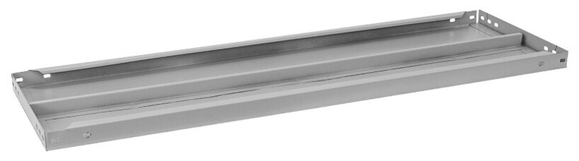 Полка для металлического стеллажа — обязательный элемент сборной системы хранения для гаража, погреба, кладовой также для домашнего и офисного пространства. Конструкция стеллажей, как правило, разборная и представляет собой определенное количество полок, прикрепленных к вертикальным стойкам. Для сборки одного стеллажа необходимо минимум 2 полки. Изделие изготовлено из толстого металла. Поверхность покрыта порошковой краской. Она предотвращает появление коррозии и придает полке эстетичный вид. Преимущества: Полки имеют отверстия для крепежа, благодаря чему их можно устанавливать на любой высоте стеллажа; Съемные полки можно располагать на любом расстоянии друг от друга. Равномерно распределенная нагрузка - до 100 кг. Усилена центральным ребром жесткости. Толщина металла полки - 0,5 мм. Толщина металла торцевого ребра - 1 мм. Цвет: светло-серый полуматовый (RAL 7038), порошковый окрас.