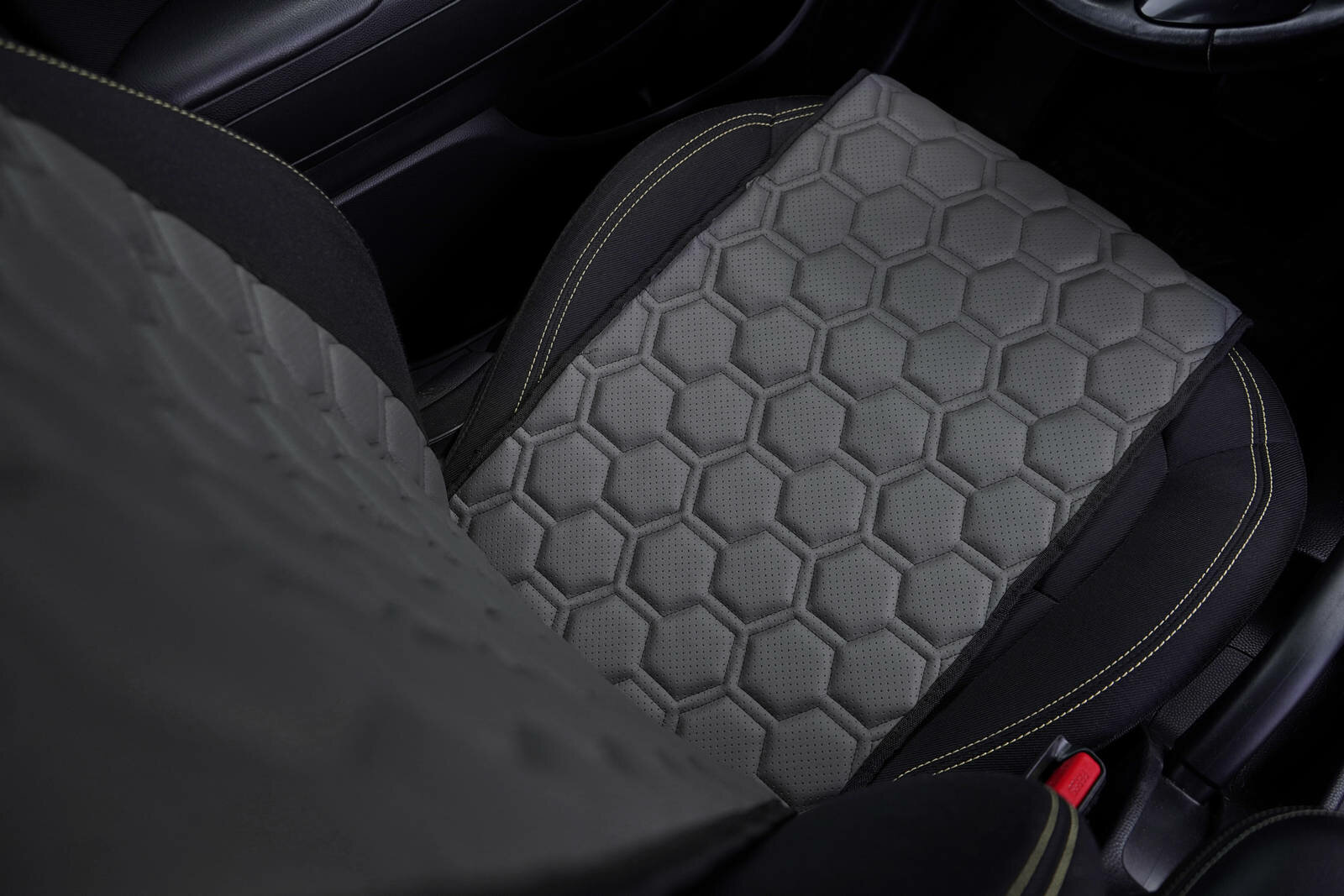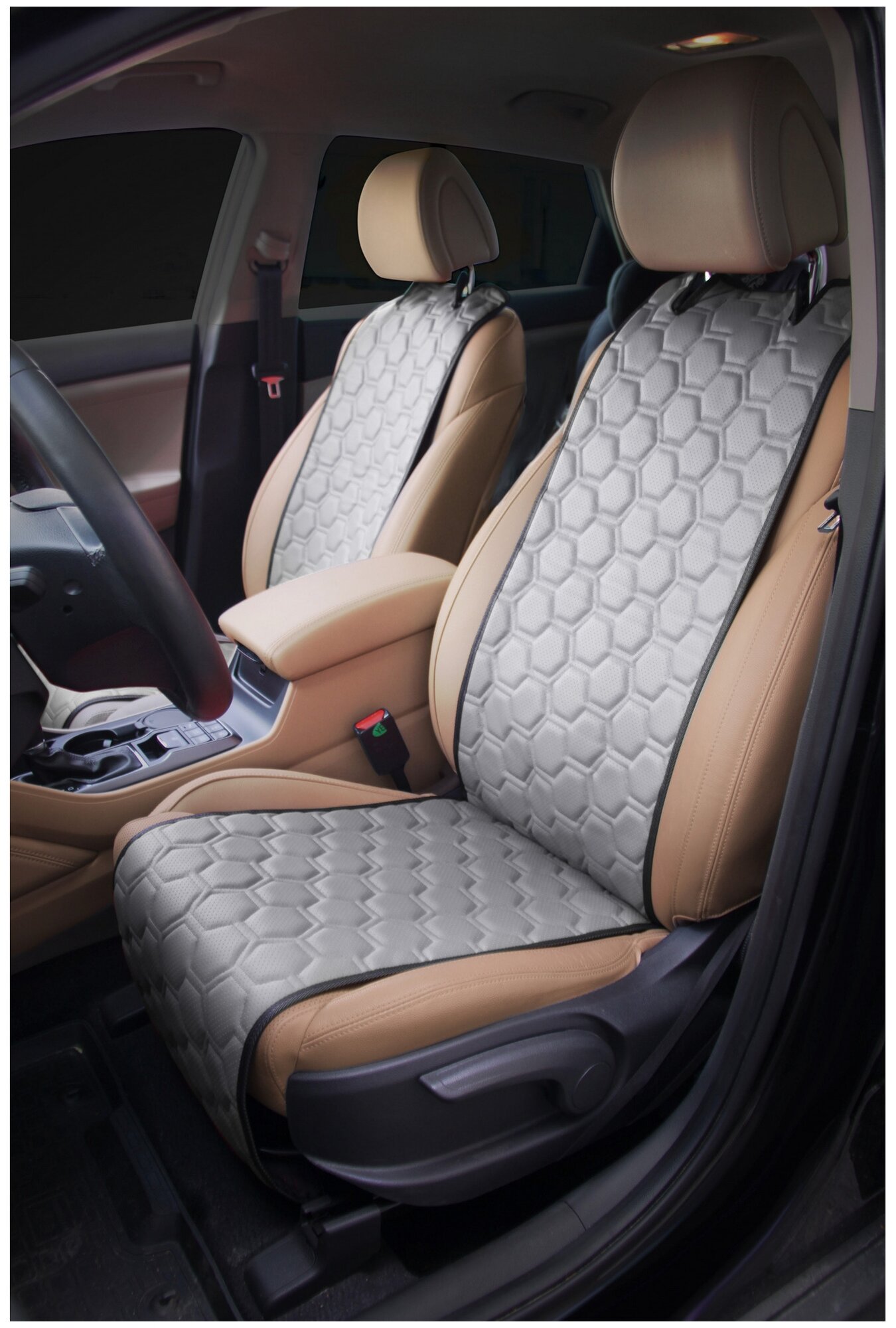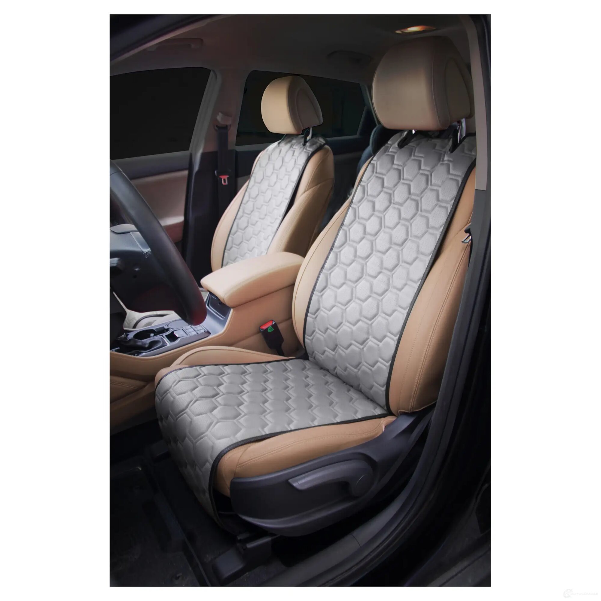 Накидки "Алькантара", передние (2 шт.), экокожа с перфорацией, серые Описание: Накидки сшиты из современой экокожи и защищают штатную обивку от истирания и выцветания. Имеют стеганый дизайн с оригинальным рисунком, что придает салону домашний комфорт и уют; Благодаря своей форме накидки позволяют без затруднений надевать их на кресла любого типа, не прибегая к демонтажу подголовников и подлокотников, а так же не препятствует раскрытию подушек безопасности. Все модели, имеют универсальную систему крепления позволяющую применять изделие на 99% существующего автопарка России. Комплект состоит из двух накидок на переднии сиденья. Преимущества: Защищает обивку автомобильных сидений от истирания; Перфорация для микропроветривания; Удобные застежки на направляющие подголовника; Универсальное крепление и размер. Характеристики: Артикул: Размер: 150*34 см Рисунок (стёжка): Соты Комплектация: Накидки на сиденье -2 шт. Сумка-ПВХ-1 шт. Гарантия: от 1 года.