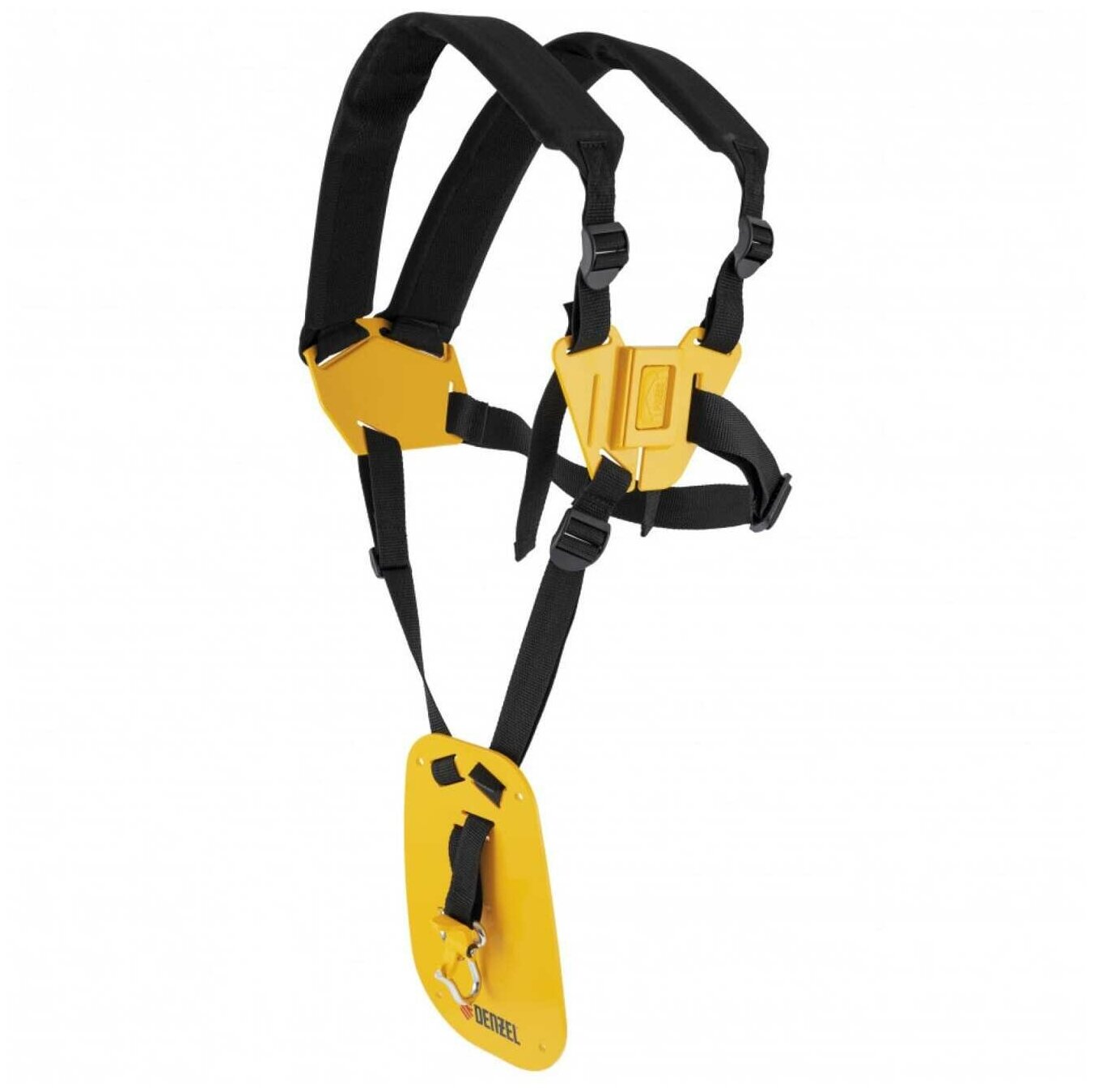 Ремень ранцевого типа, предназначен для использования с триммерами. За счет удобных лямок с мягкими накладками на два плеча, он оптимально распределяет нагрузку на опорно-двигательный аппарат оператора.Снижает вибрацию, обеспечивая безопасную и комфортную работу. Длину ремня можно регулировать. Ремень имеет быстросъемное крепление.