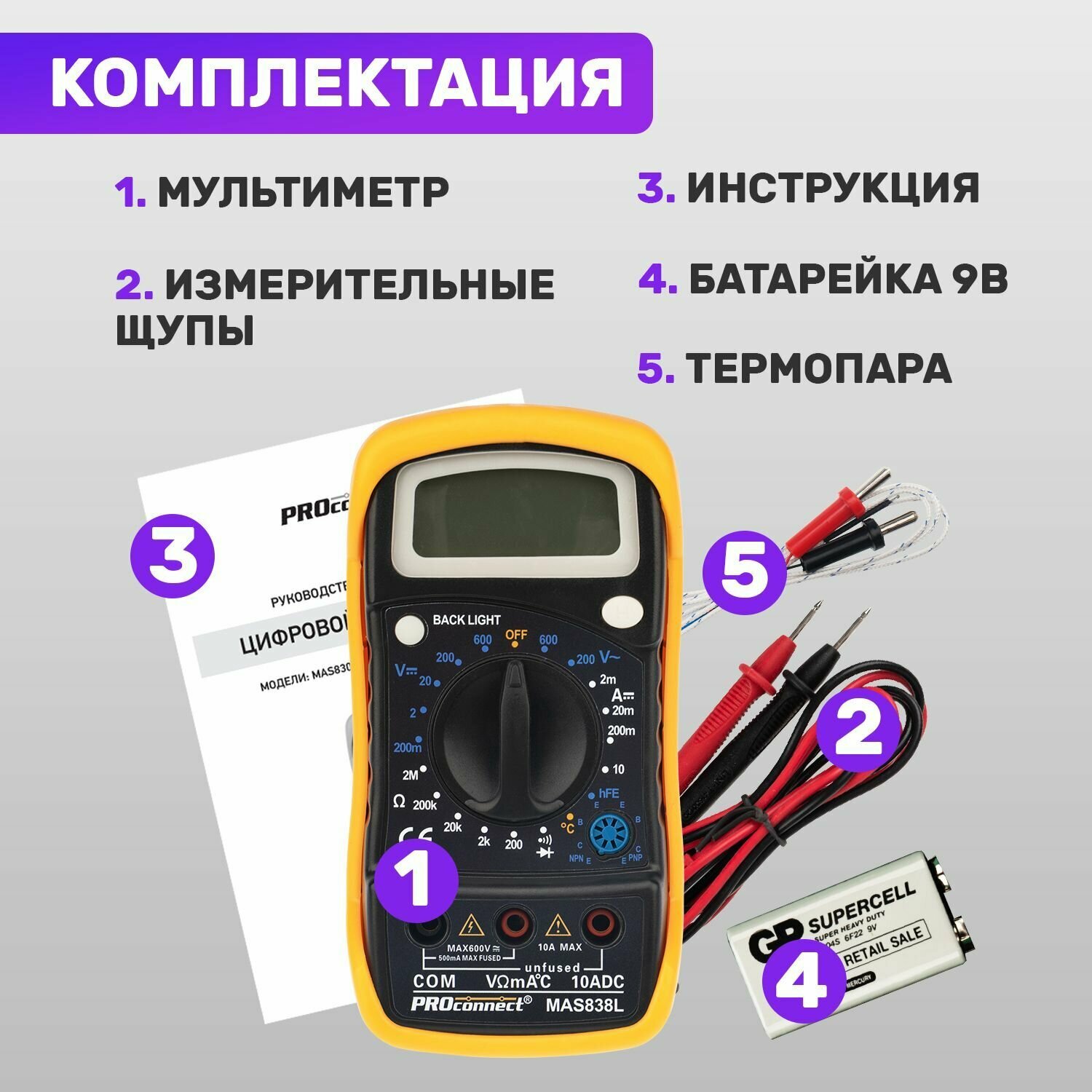 Мультиметр цифровой Proconnect Mas838l (dt858l) карманный
