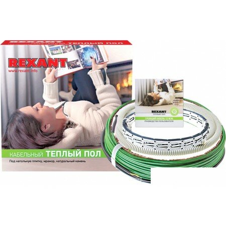 Кабельные теплые полы REXANT RNB-45-550 51-0504-3 укладывается под плитку без создания стяжки. Теплый пол представляет собой двужильный экранированный нагревательный кабель мощностью 550 Вт и длиной 45 метров, рассчитанный на обогрев поверхности пола площадью 3,5-4,5 кв.м.