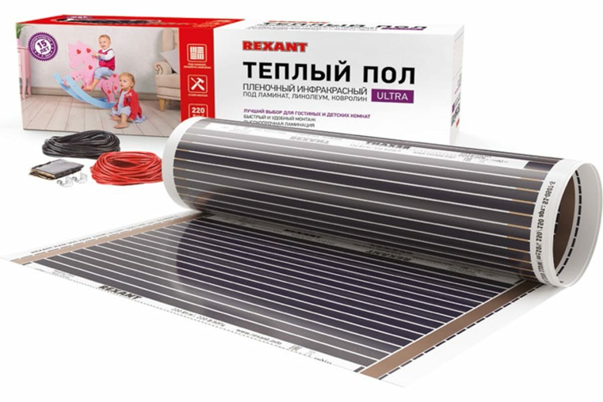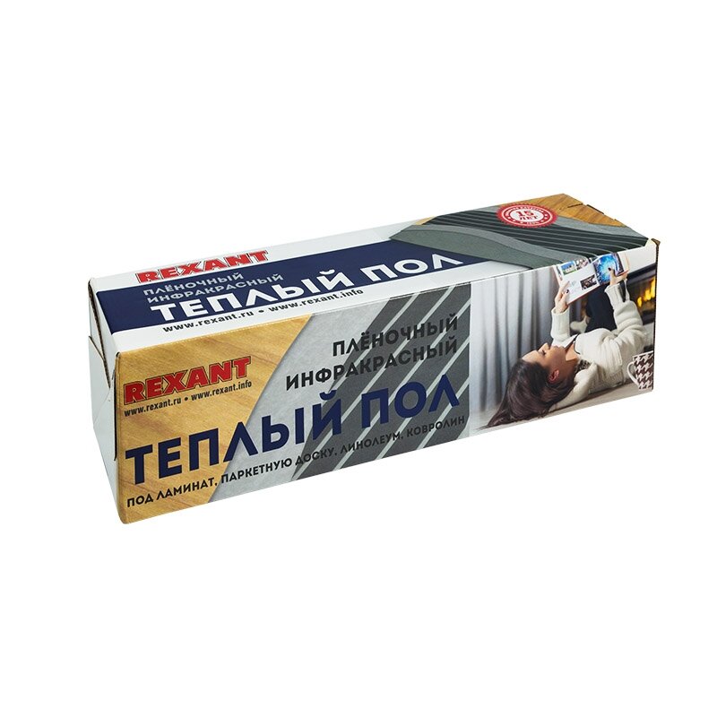 Пленочный теплый пол REXANT возможно применить под ламинат, линолеум, ковролин и паркетную доску.