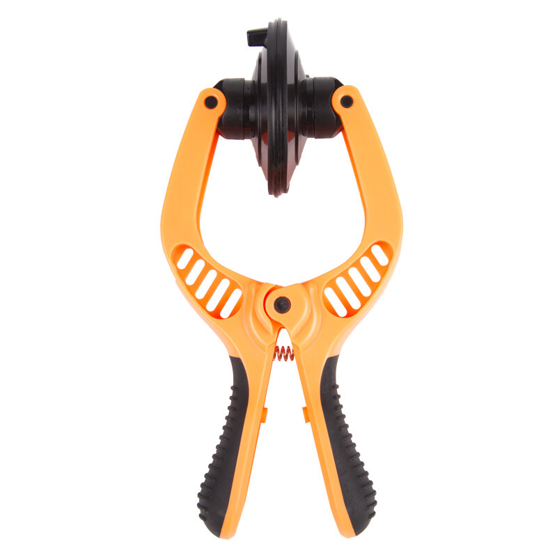 Устройства устанавливаются между двумя присосками, которые прочно закрепляются на корпусе и экране, создавая мощный вакуум. При смыкании рукояток дисплей легко удаляется. Присоски могут фиксироваться и только с одной стороны техники, прямо на экране. Благодаря форме ножниц инструмент подходит для работы с устройствами любых размеров. Корпус съемника-присоски выполнен из ударопрочного пластика. Эргономичные прорезиненные рукоятки имеют рифление, благодаря которым ладонь не скользит при работе.