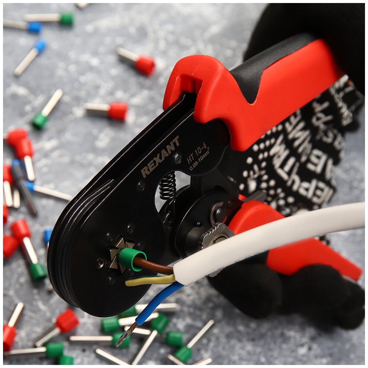 Кримпер REXANT HT 10-6 - универсальный электромонтажный инструмент для обжима штыревых наконечников в диапазоне 0.08-10.0 мм2. Корпус выполнен из высокопрочной закаленной инструментальной стали (сплав хрома и ванадия). Оснащен закругленными линиями корпуса для безопасного применения. Шестисегментная саморегулирующая матрица с системой поворотных кулачков диафрагменного типа выполняет шестиугольный профиль обжима с рифлением. Имеется настройка давления опрессовки и принудительно размыкающаяся блокировка, которая не позволяет разойтись рукояткам до полной опрессовки (контролирует качество контактного соединения). Кримпер дополнен регулятором прижимного усилия с 6 положениями. Инструмент перекрывает диапазон обжима из 17 размеров втулочных наконечников. Инструмент оснащен противоскользящими прорезиненными рукоятками.