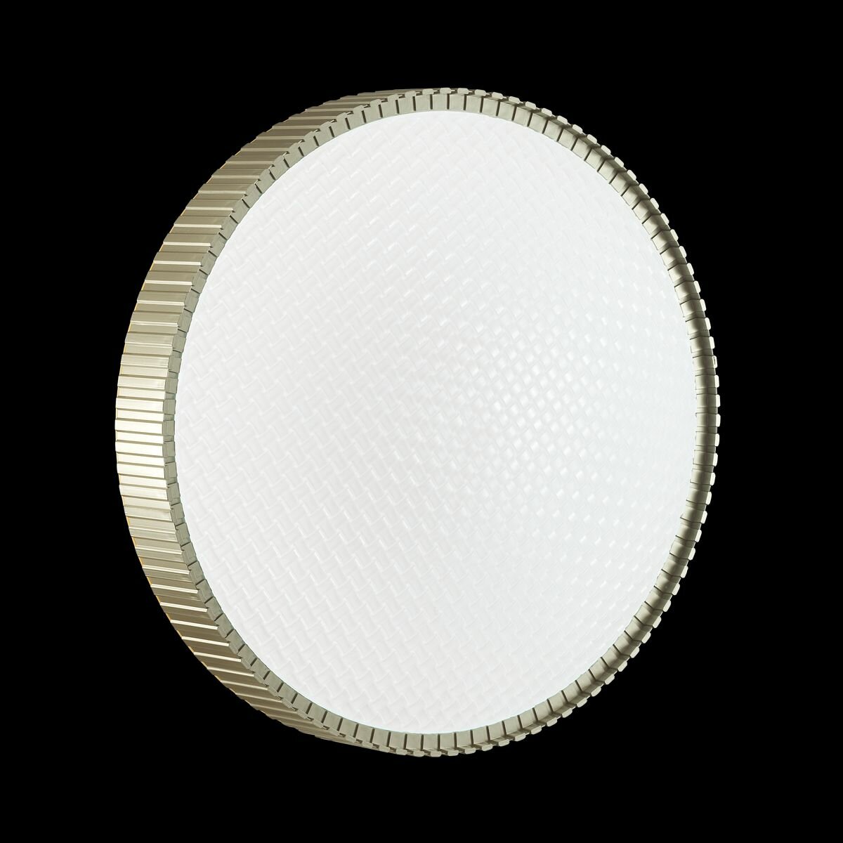 Светильник 3004/DL линии MOSTLI cсостоит из металлического основания (базы) и пластикового рассеивателя. Материал рассеивателя - высококачественный акрил белого цвета с матовой поверхностью, обеспечивающий светильнику равномерное рассеивание и хорошее светопропускание. Форма плафона: круглая, рельефной структуры, декорирована рельефной окантовкой золотого цвета. Степень защиты IP43 позволяет использовать светильник в определенных зонах влажных помещений. В комплект входит заменяемый LED модуль, мощностью 48Вт, с функцией память . И пульт ДУ с функциями: плавного изменения цветовой температуры 3000-6500К, изменения яркости, перехода в режим переключения теплого/белого/холодного/ночного света. Светильником можно также управлять через мобильное приложение LampSmart (скачать в Google Play, Appstore).