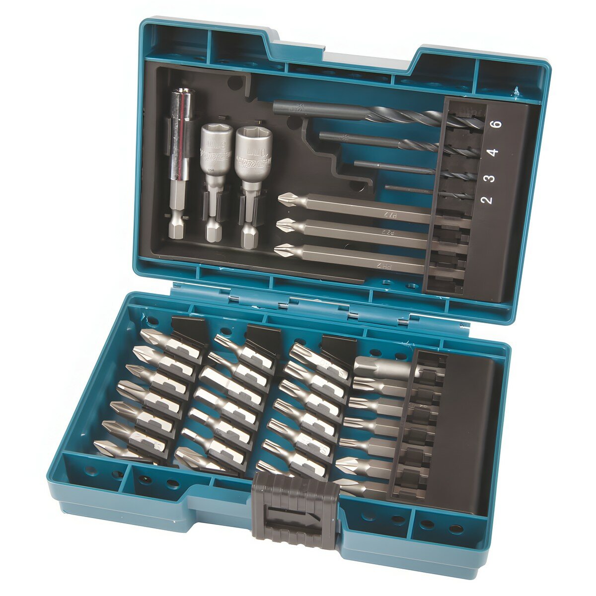 | Состав комплекта | Свёрла HSS-R (4 шт.). Набор бит 25 мм (21 шт.), 50 мм (6 шт.), 100 мм (3 шт.). Торцовые головки 2 шт., адаптер, магнитный держатель |
