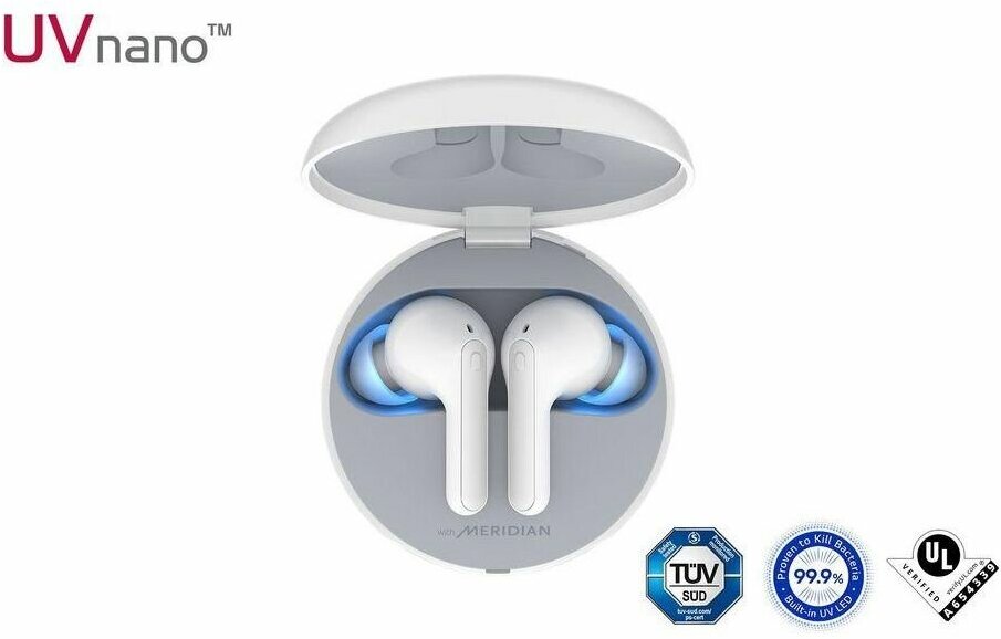 Кейс оснащен технологией UVnano, которая убивает до 99.99% бактерий на сетке динамика. Достаточно всего 10 минут дезинфекции. Технология работает тогда, когда кейс подключен кабелем к зарядному устройству, наушники находятся внутри и крышка закрыта. Также кейс поддерживается беспроводную зарядку Qi.